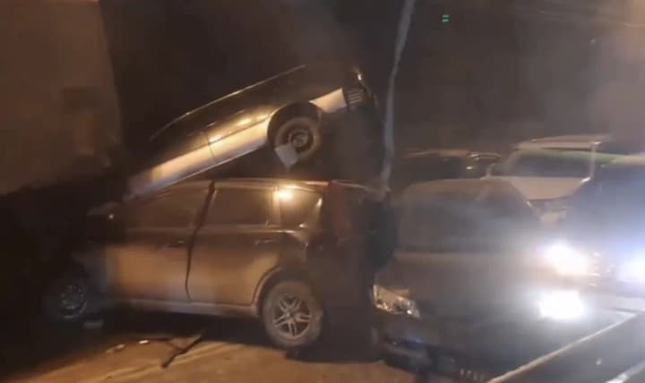 За попередньою інформацією, на вулиці прорвало трубу, вода швидко замерзла, перетворивши дорогу на ковзанку. Водії не встигали загальмувати і зіштовхнулися один з одним. Допомога лікарів знадобилася одній людині.