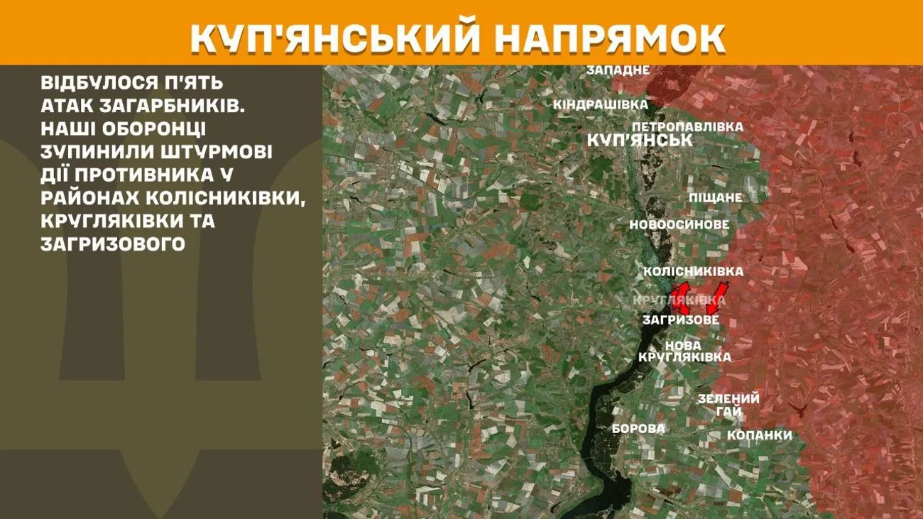 In the Kupyansk direction, five attacks by the invaders took place yesterday. Our defenders stopped the enemy's assault actions in the areas of Kolosnykivka, Kruglyakivka and Zagryzove.