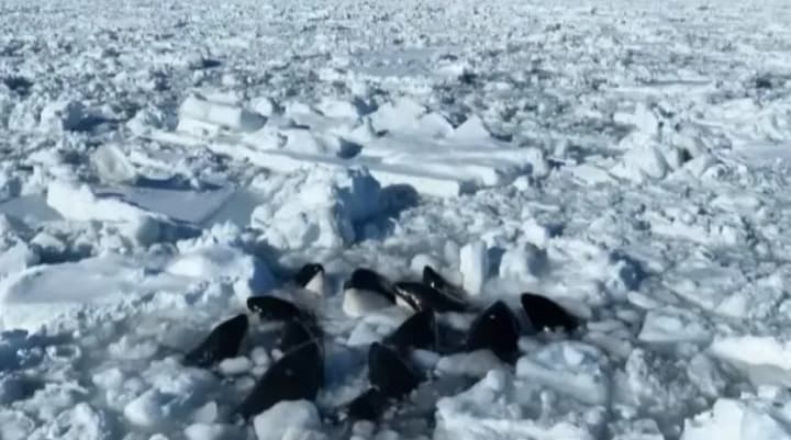 A pod of killer whales is trapped in ice off the coast of Japan: their lives are at risk