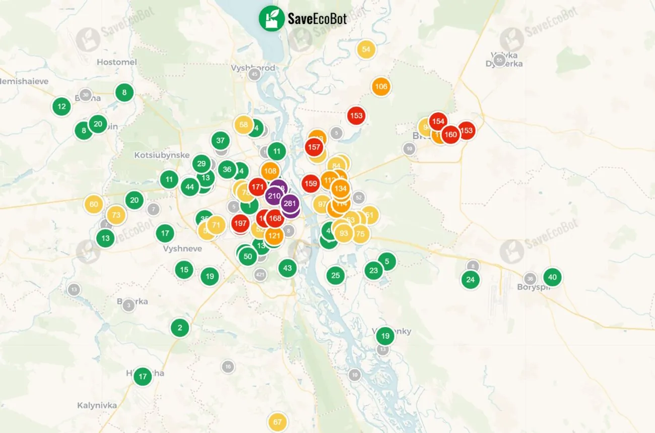 At the same time, a harmful level was recorded in the following districts of Kyiv: