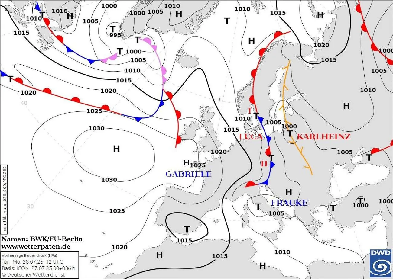 Cyclone Karlheinz from Poland will cause rains, thunderstorms, squalls, and hail in western Ukraine on July 28. Unstable weather is also expected in Zhytomyr, Vinnytsia, Kyiv, Cherkasy, and Chernihiv regions.