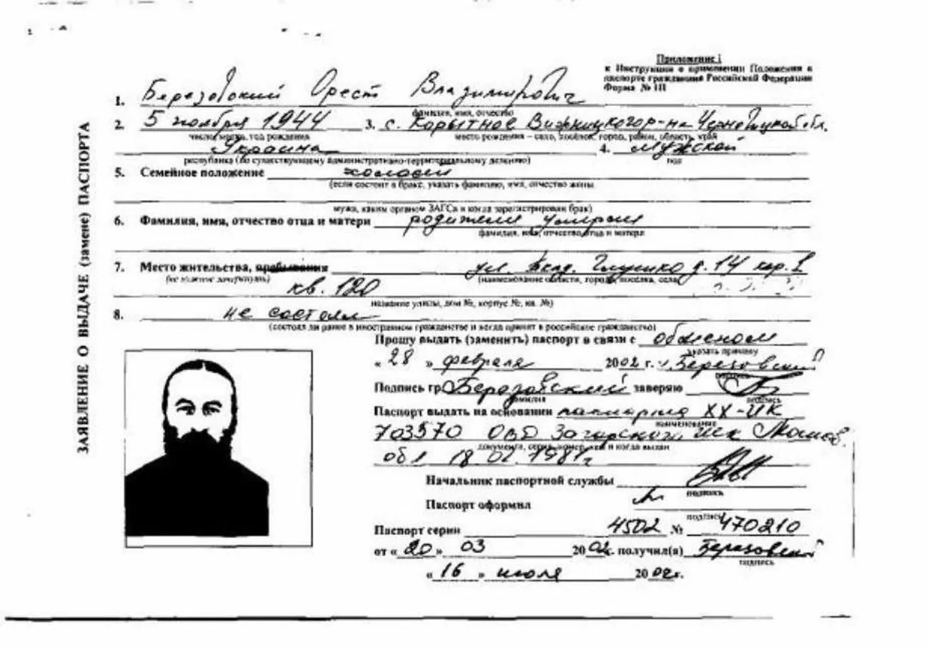 However, data from the Russian passport system refutes the statements of the UOC-MP, which claim that Orest Berezovsky, Metropolitan Onufriy of the UOC (MP), does not have a passport of the terrorist country. The passport is "valid" - it is written clearly and unequivocally.