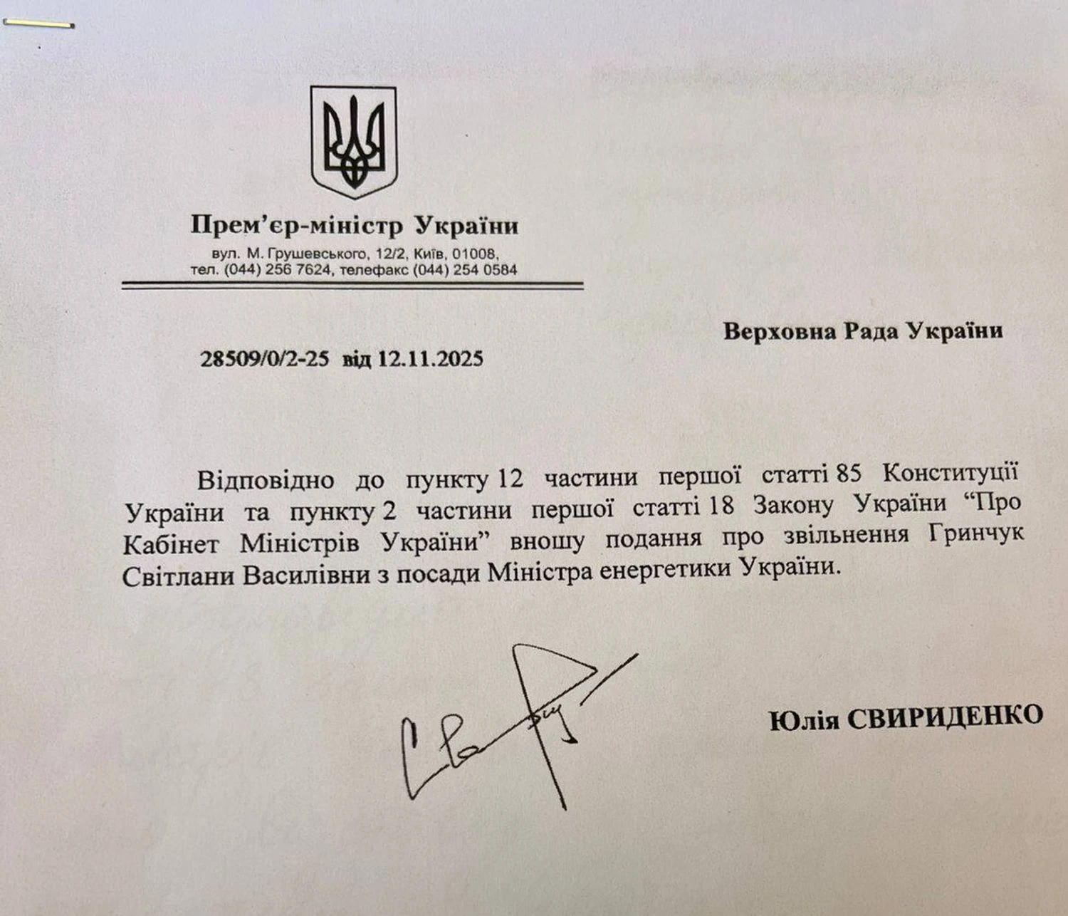 On November 12, Prime Minister Yulia Svyrydenko announced that the government had suspended Herman Halushchenko from the post of Minister of Justice. He previously held the post of Minister of Energy.