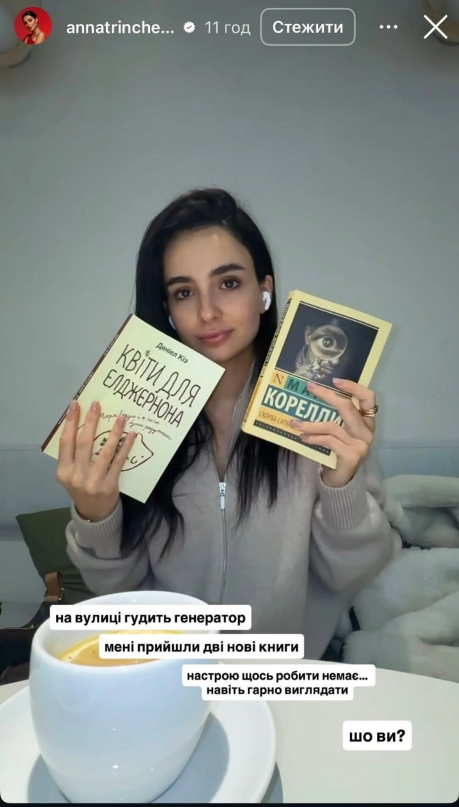 Singer Anna Trincher found herself at the center of a scandal after showing a Russian-language book on social media. She explained that the books were ordered by her assistant, and she herself reads exclusively in Ukrainian.