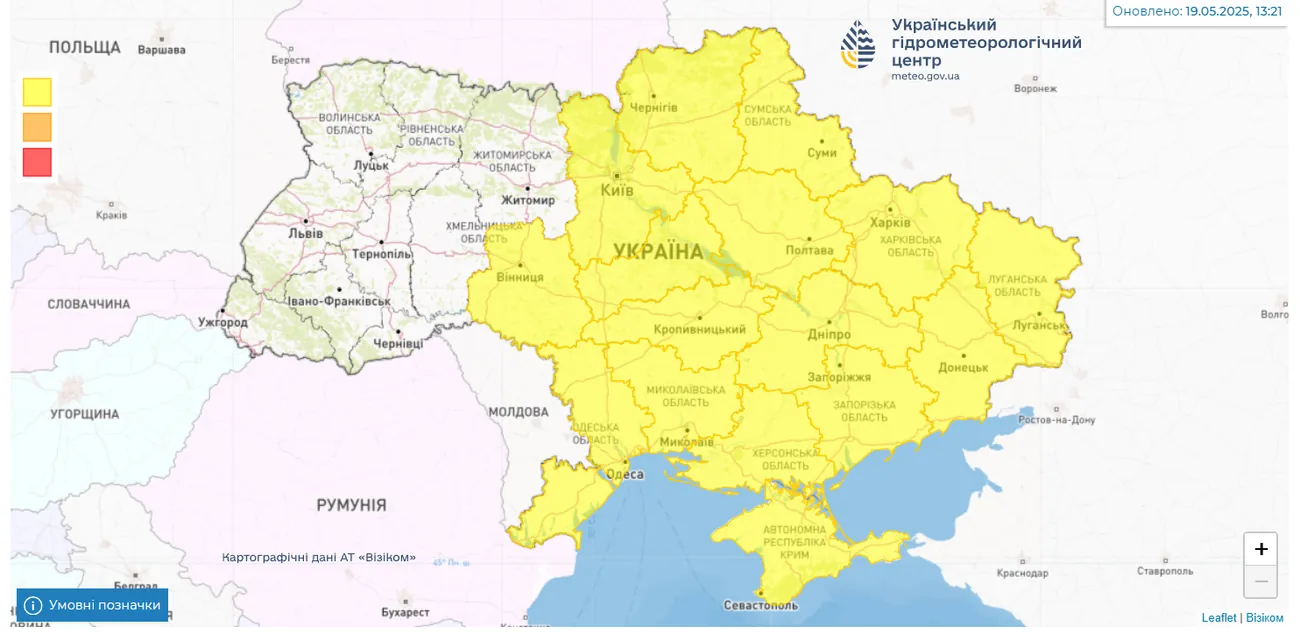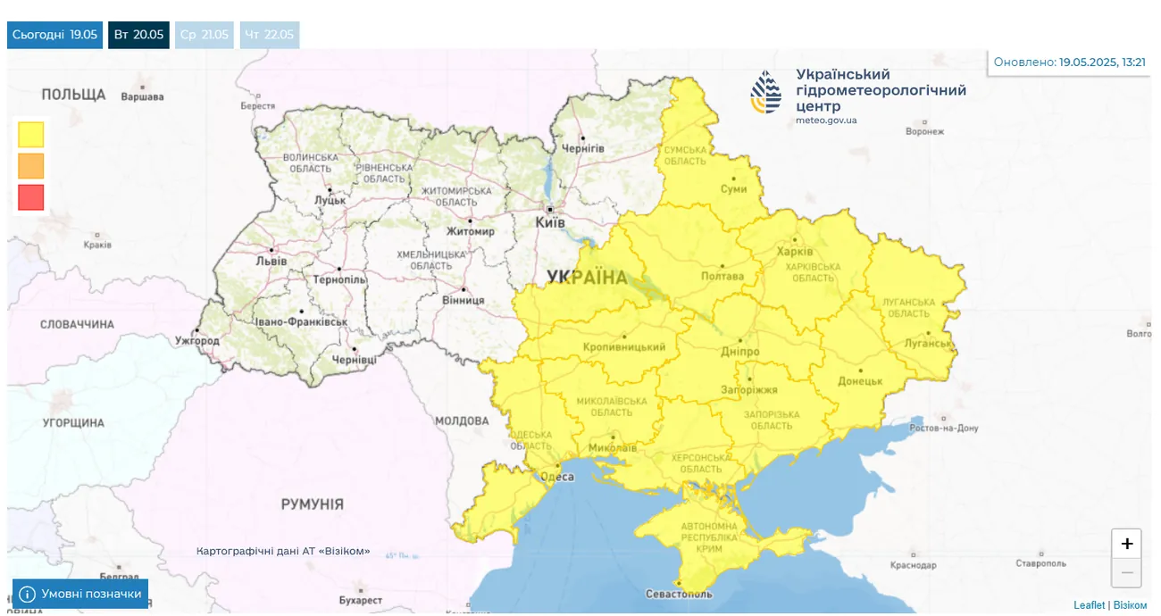 On Tuesday, May 20, a "yellow" level of danger has been declared in all of the above-mentioned regions of Ukraine, with the exception of Kyiv, Vinnytsia and Chernihiv regions.
