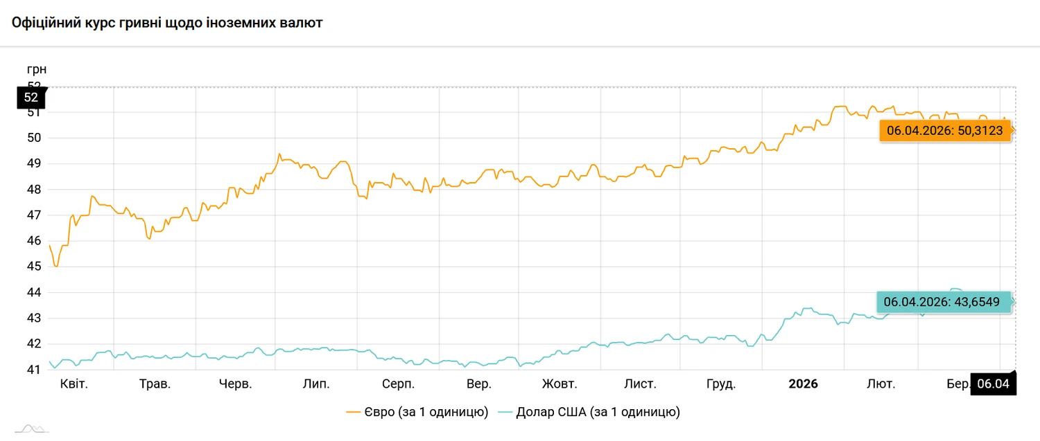 The NBU also set the official euro exchange rate against the hryvnia for April 6 at 50.3123 UAH/EUR, strengthening the hryvnia by 14 kopecks per day.