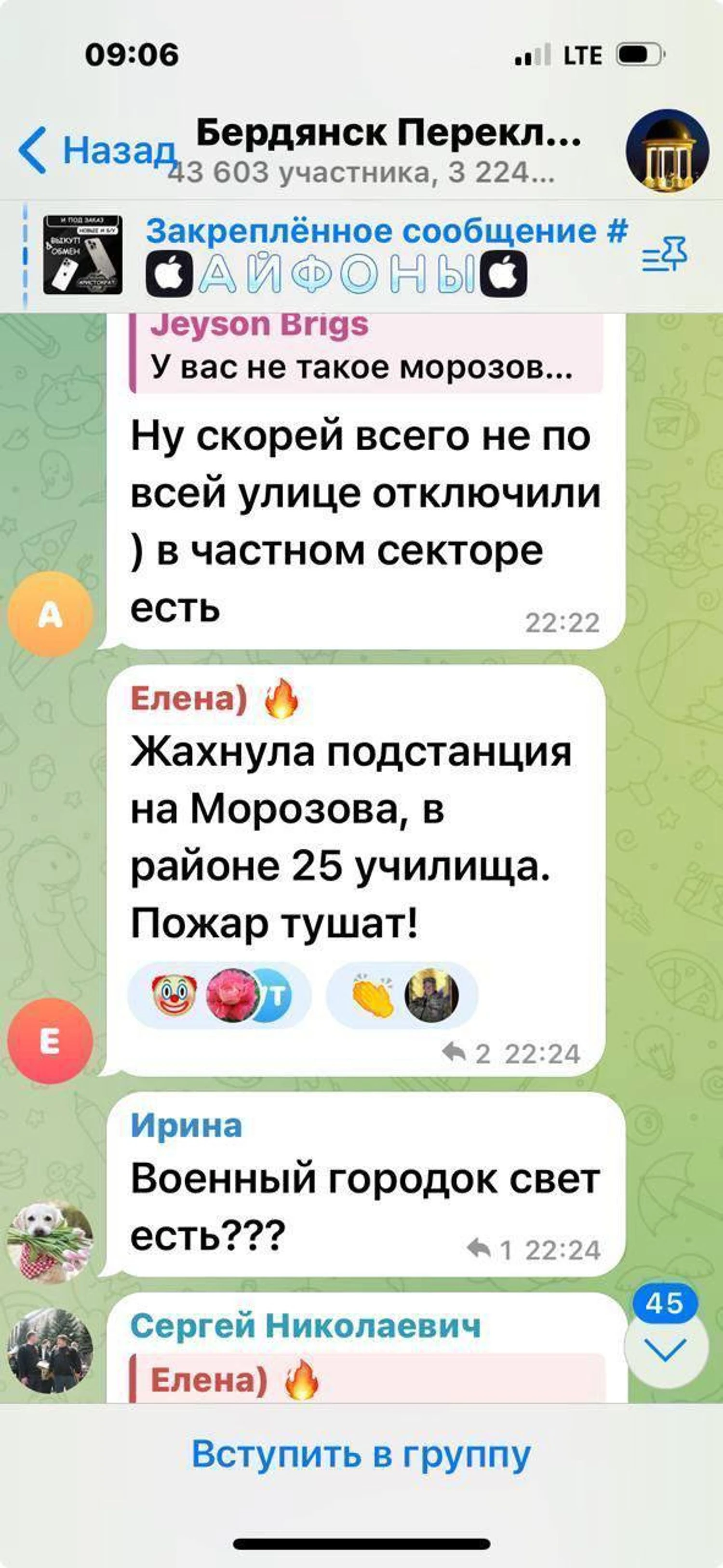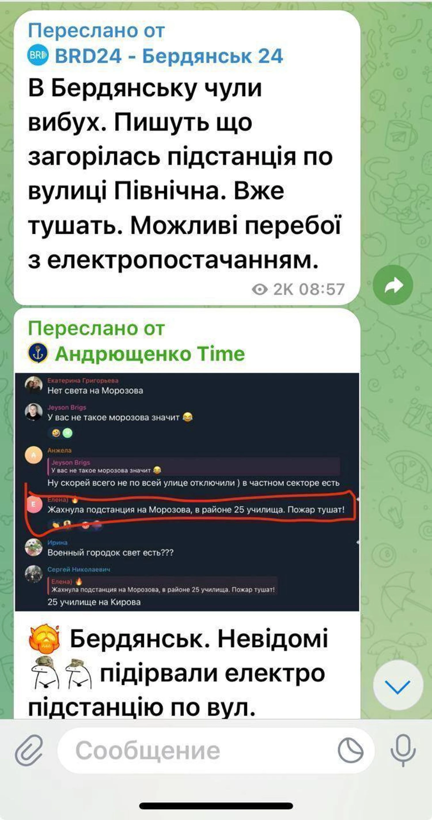 An explosion occurred at an electrical substation in temporarily occupied Berdiansk, which supplied energy to an enterprise for repairing Russian military equipment. As a result of the incident, the substation was put out of action, and power outages occurred on nearby streets.
