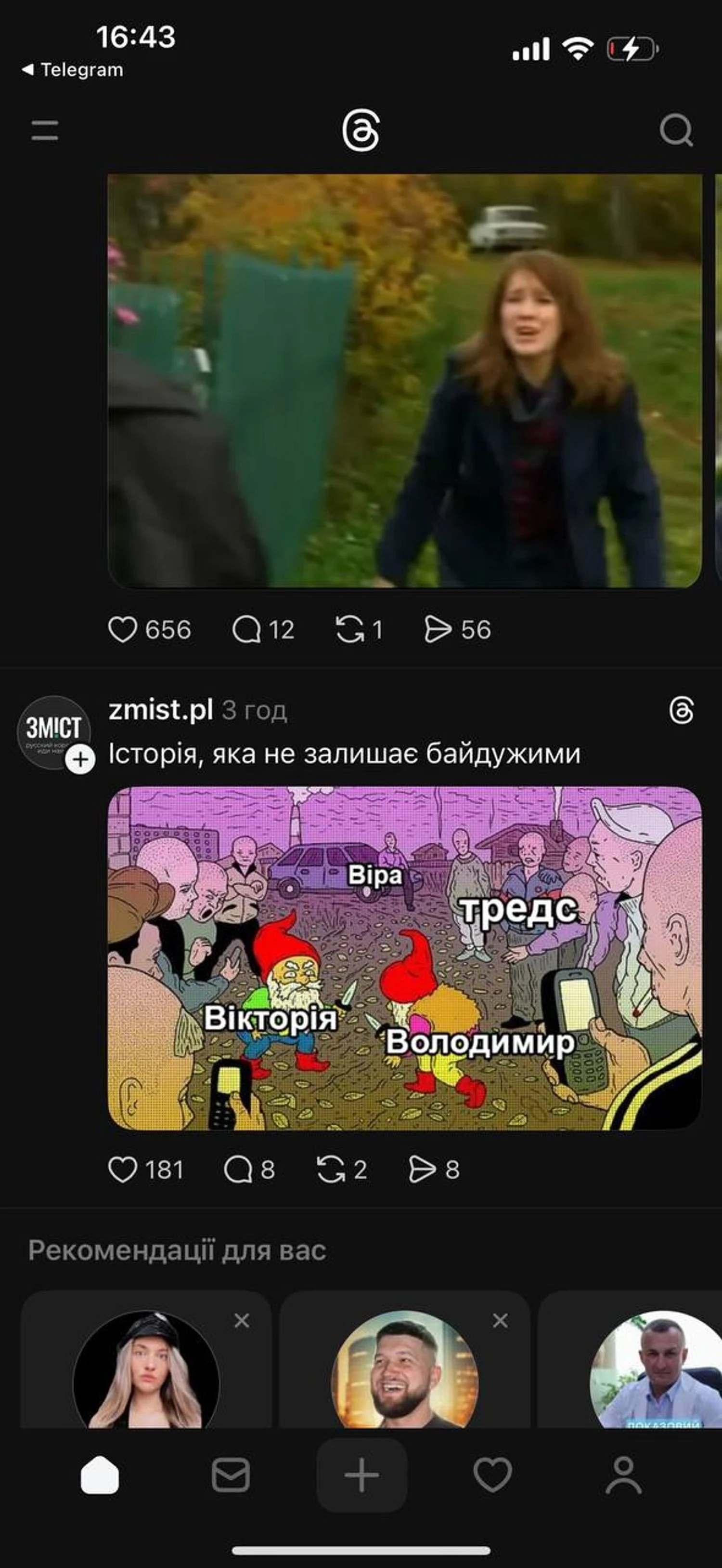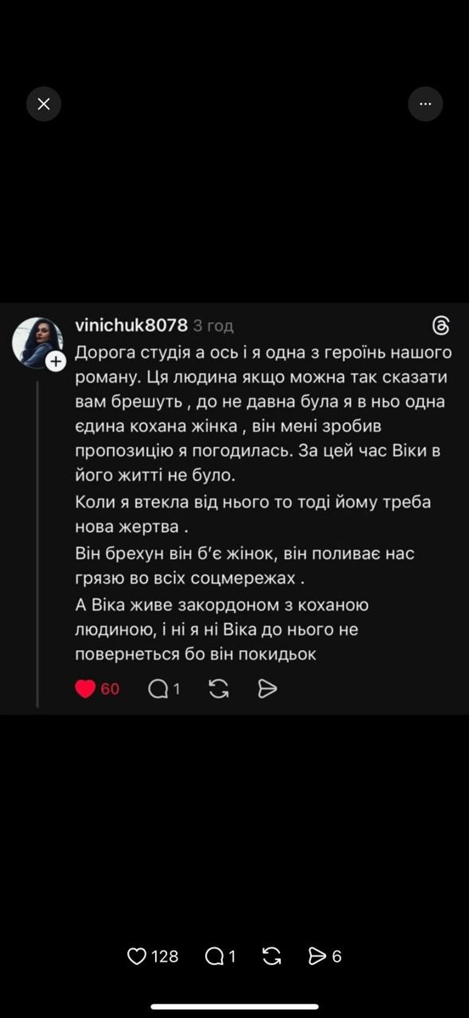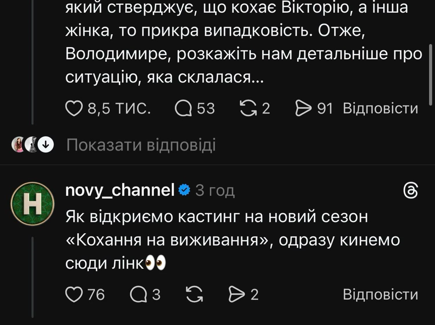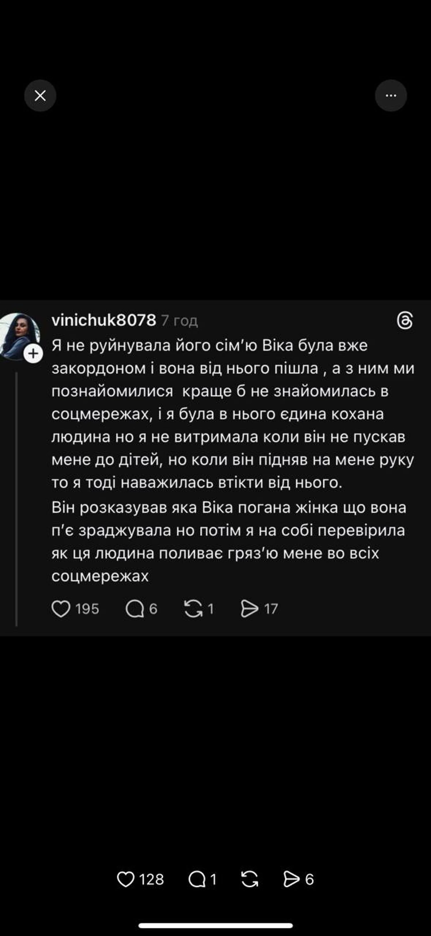 A new trend has emerged on Threads, rapidly spreading across the network. Users are discussing a story involving Volodymyr Bortkov, his girlfriend Viktoriia Stasii, and Vira Vinchuk, whom posts refer to as his "mistake." This is reported by UNN with reference to Volodymyr Bortkov's Threads.