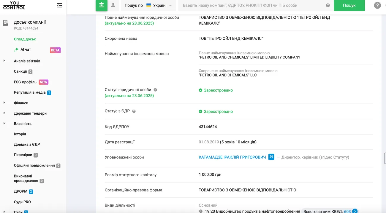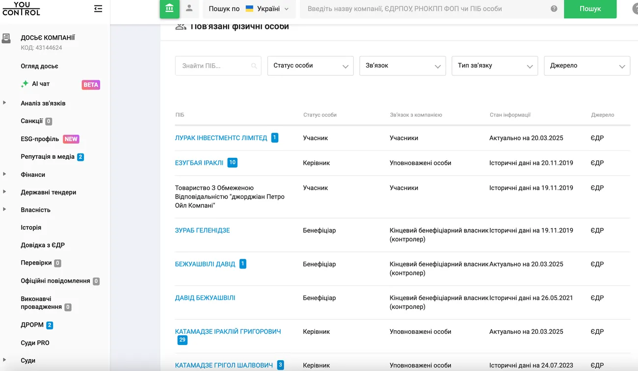 This company was the only participant that, at each stage of the auction, offered a price exactly 1,000 hryvnias higher than the next competitor. The structure of "Petro Oil" itself, as YouControl data shows, is connected through offshore companies to the Georgian oligarch David Bezhuashvili, who, according to journalists, "controls Georgia's energy sector with Russian money and 'fronts' Russian assets in this region."