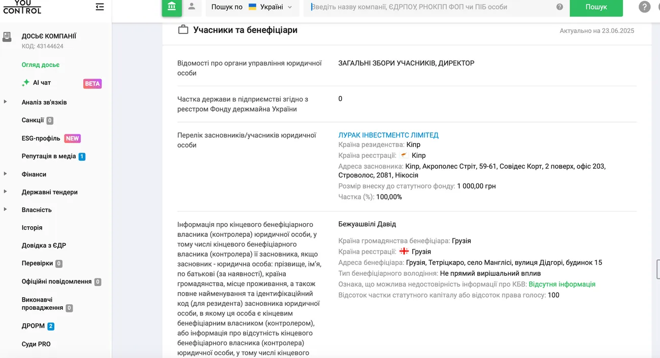 According to YouControl, Grigol Katamadze himself was once the head of this company, which may indicate a personal interest in the outcome of the competition and a potential conflict of interest.
