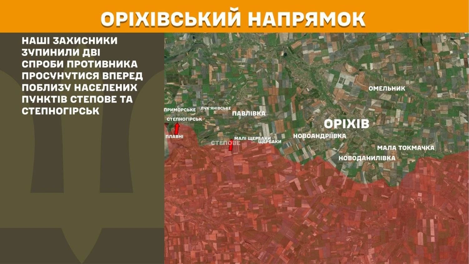 In the Orikhiv direction, our defenders stopped two attempts by the enemy to advance near the settlements of Stepove and Stepnohirsk.