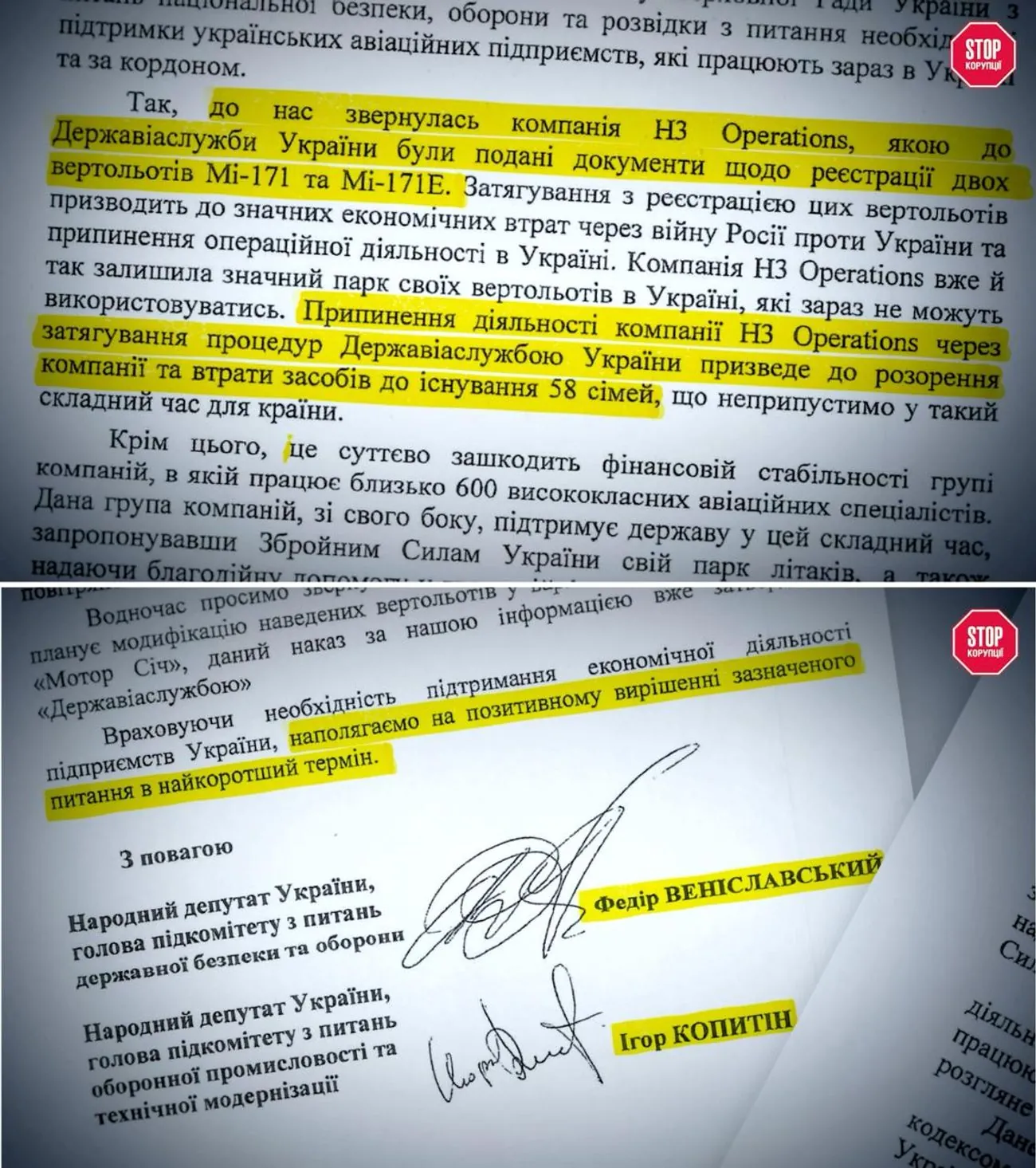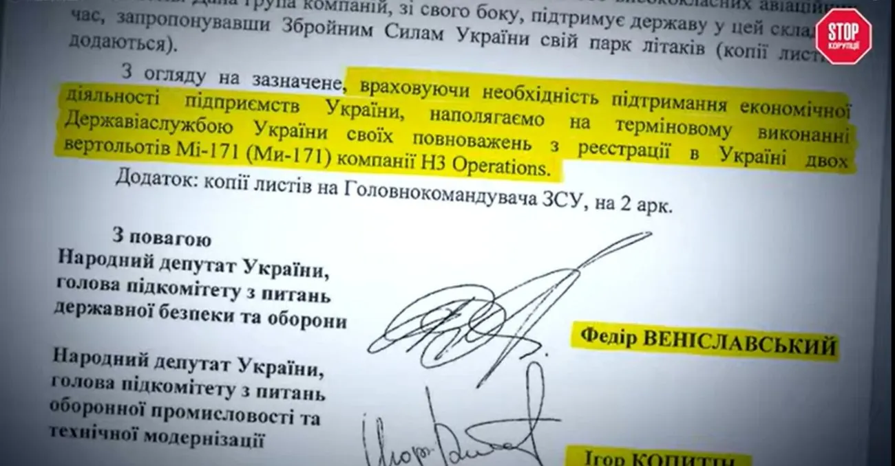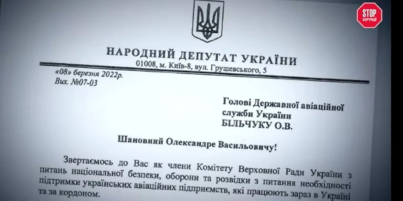 At a time when the occupiers were threatening Kyiv, and the defense forces of Ukraine were resisting the encirclement of the capital and only beginning to push back the enemy, two people's deputies were writing letters to the Head of the State Aviation Service of Ukraine, Oleksandr Bilchuk. They demanded support for LLC "NZOPEREISHINS" - let's remember this name. Two people's deputies insisted on a positive solution to the issue of urgent registration of two helicopters: Mi-171 and Mi-171E. And they achieved this registration. Letters from two people's deputies, even from the profile security committee of the Verkhovna Rada, worked.