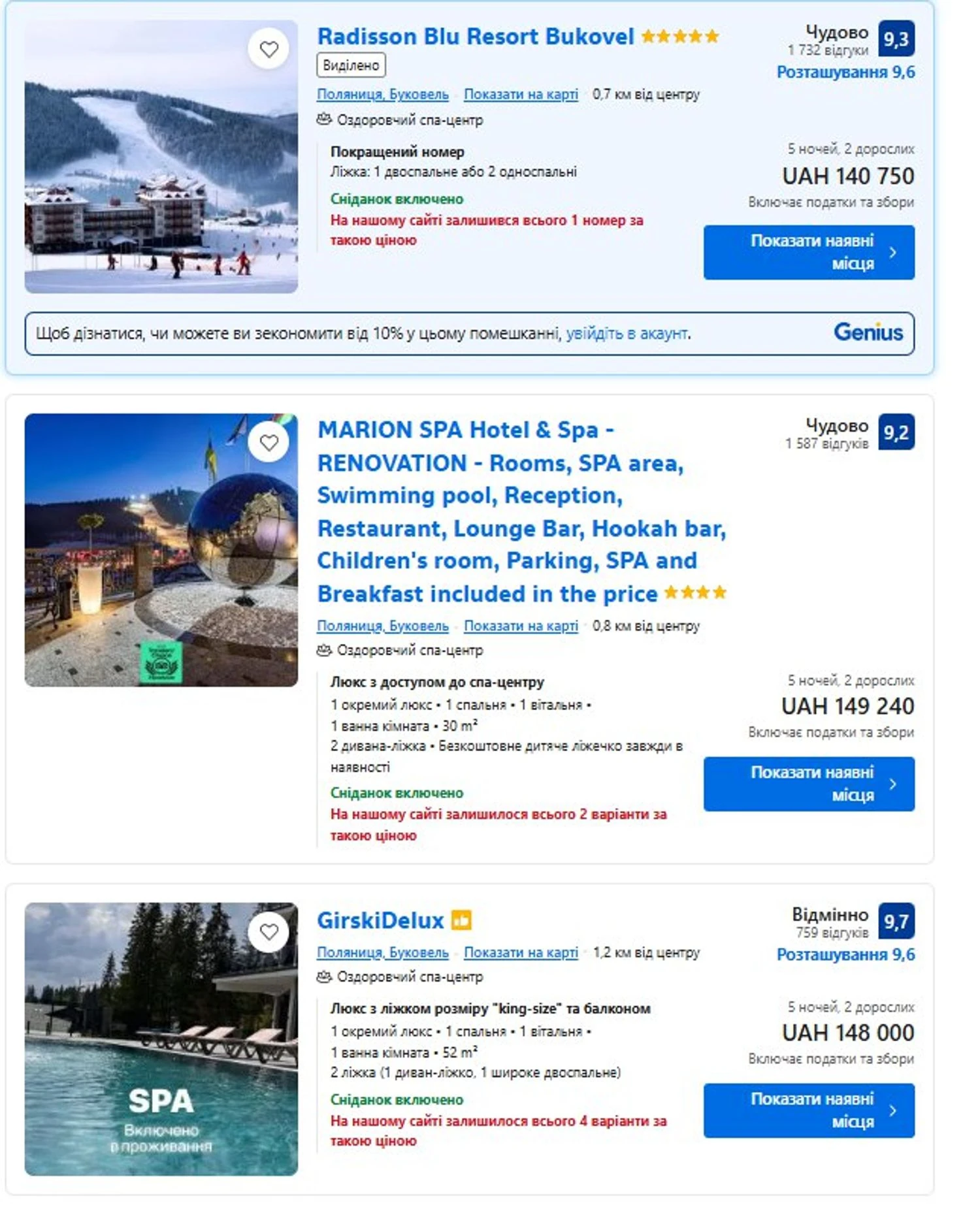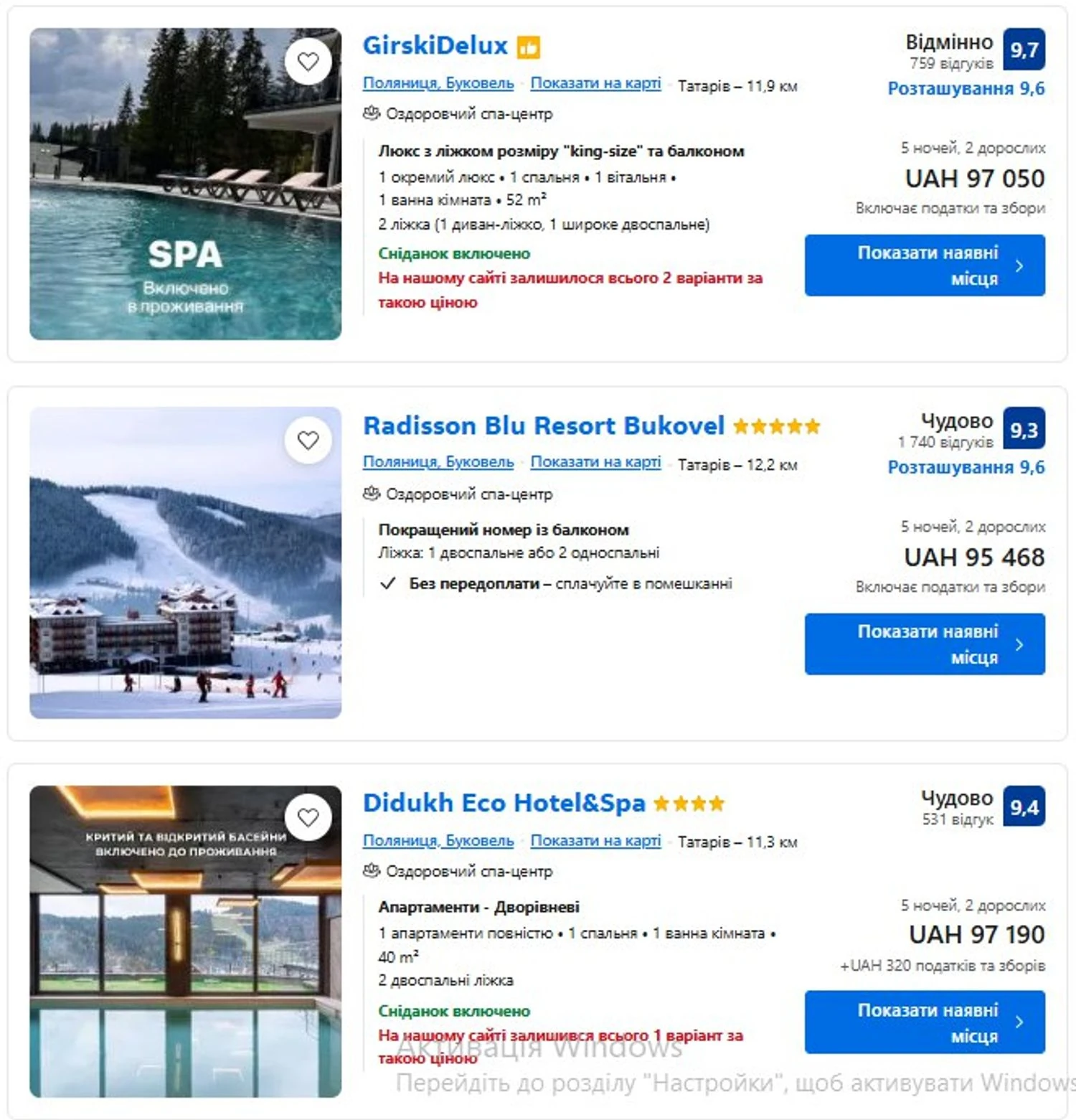 However, Polyanytsia also has a less "luxury" segment. You can find an accommodation option in a four-star hotel with good reviews, bright rooms, a spa center, and breakfast, which will cost approximately 60 thousand hryvnias for two for 5 nights.