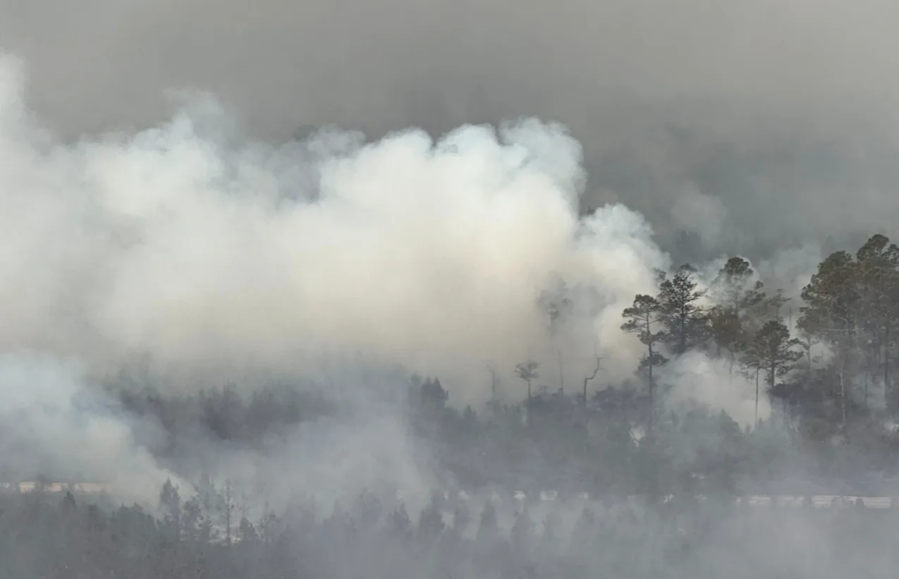 The largest fire in Brantley County, ongoing since the beginning of the week, has already destroyed at least 87 homes and covered more than 14.8 square miles. Authorities call it the largest in the state's history.
