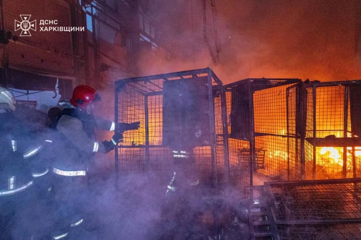 Near Kharkiv, Russia attacked a postal terminal with a missile and drones, causing a fire
