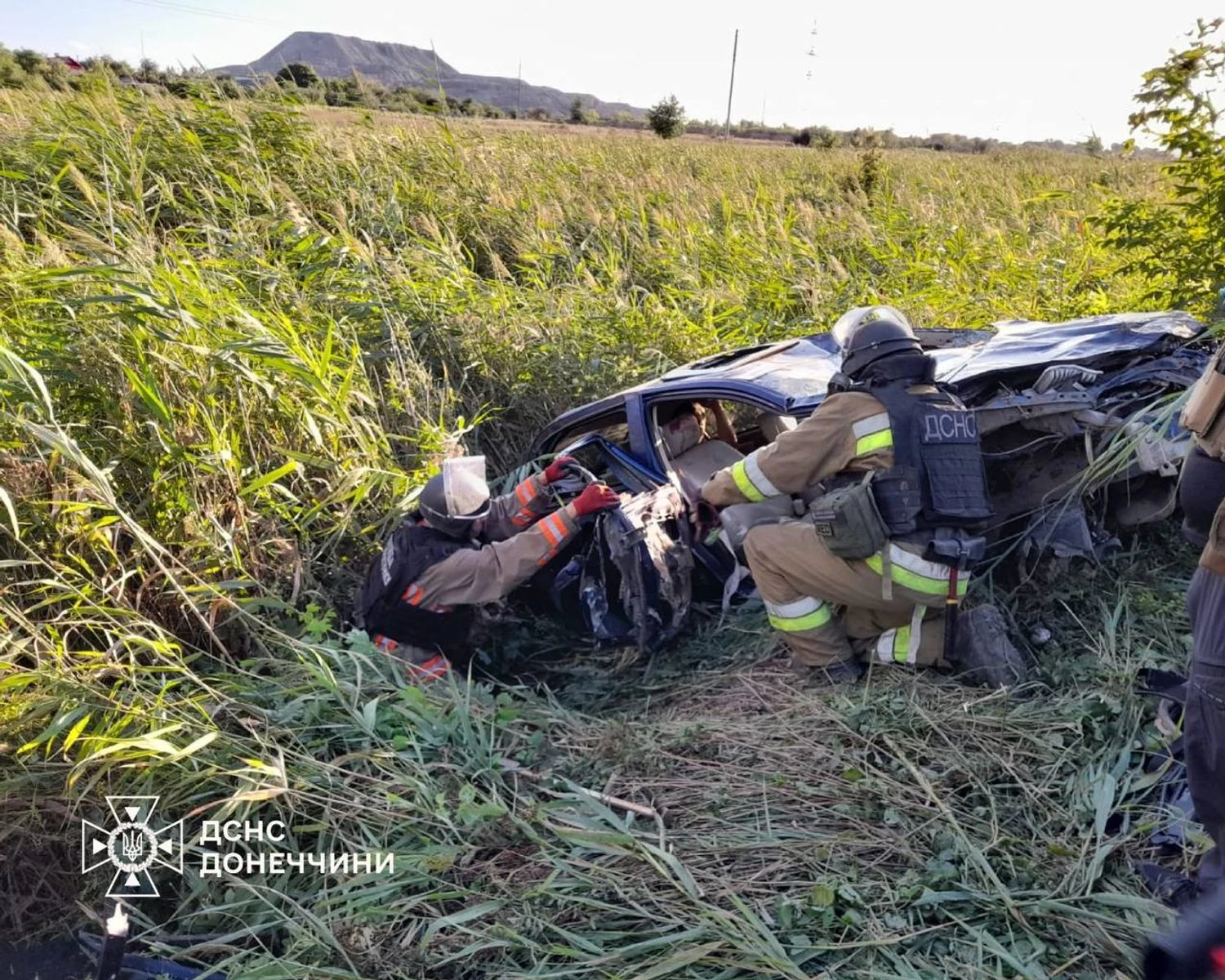 In the Donetsk region, a Russian drone hit a car with three people. The car drove into a ditch. Two men were pulled out by law enforcement officers, the third was unblocked by rescuers and handed over to medics.