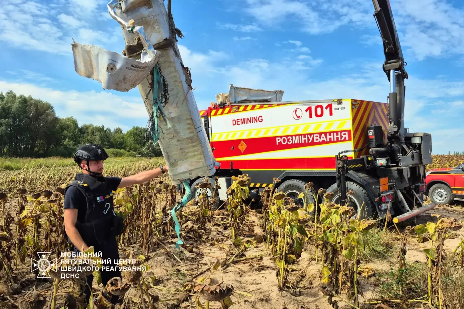 In the Kyiv region, during the sunflower harvest, farmers came across a dangerous find – the remains of a Russian missile. The incident occurred in the village of Kalyta, Brovary district, the State Emergency Service reported, writes UNN.