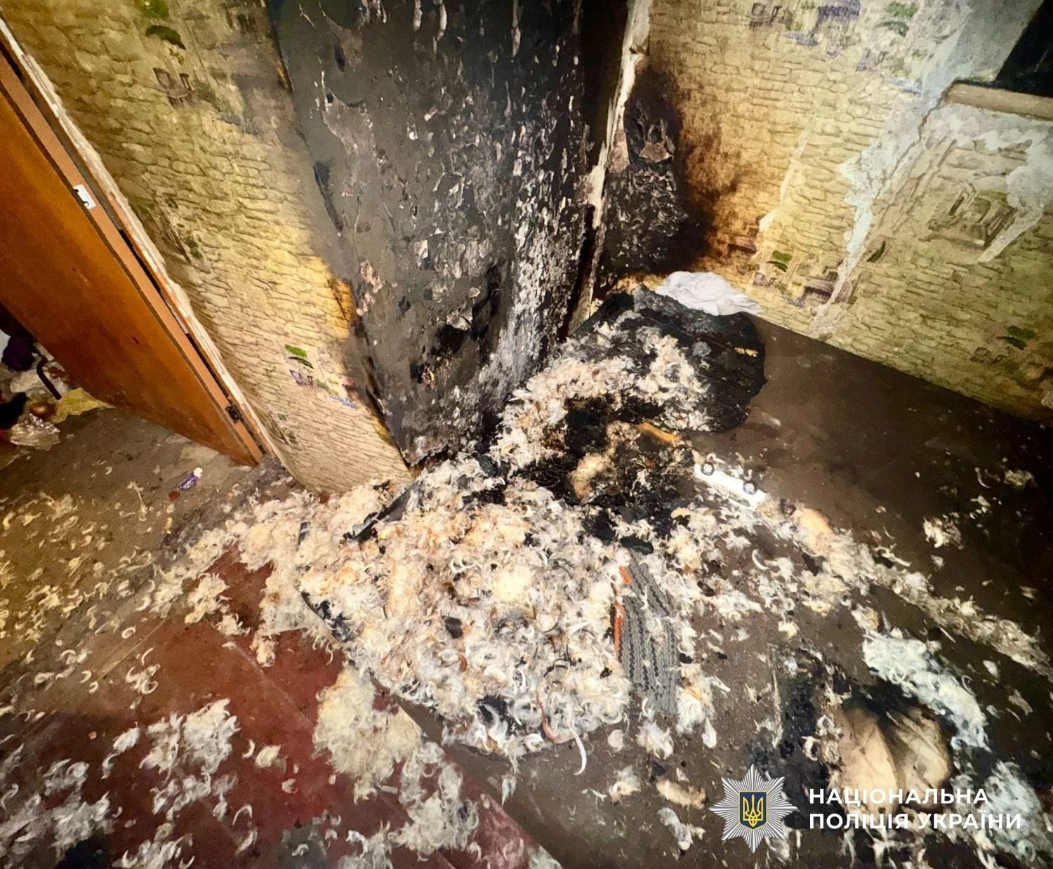 During the inspection of the premises, law enforcement officers found the child's body, a burnt wall, and a charred sofa mattress in one of the rooms. The forensic medical expert did not find external signs of violent death during the examination of the body