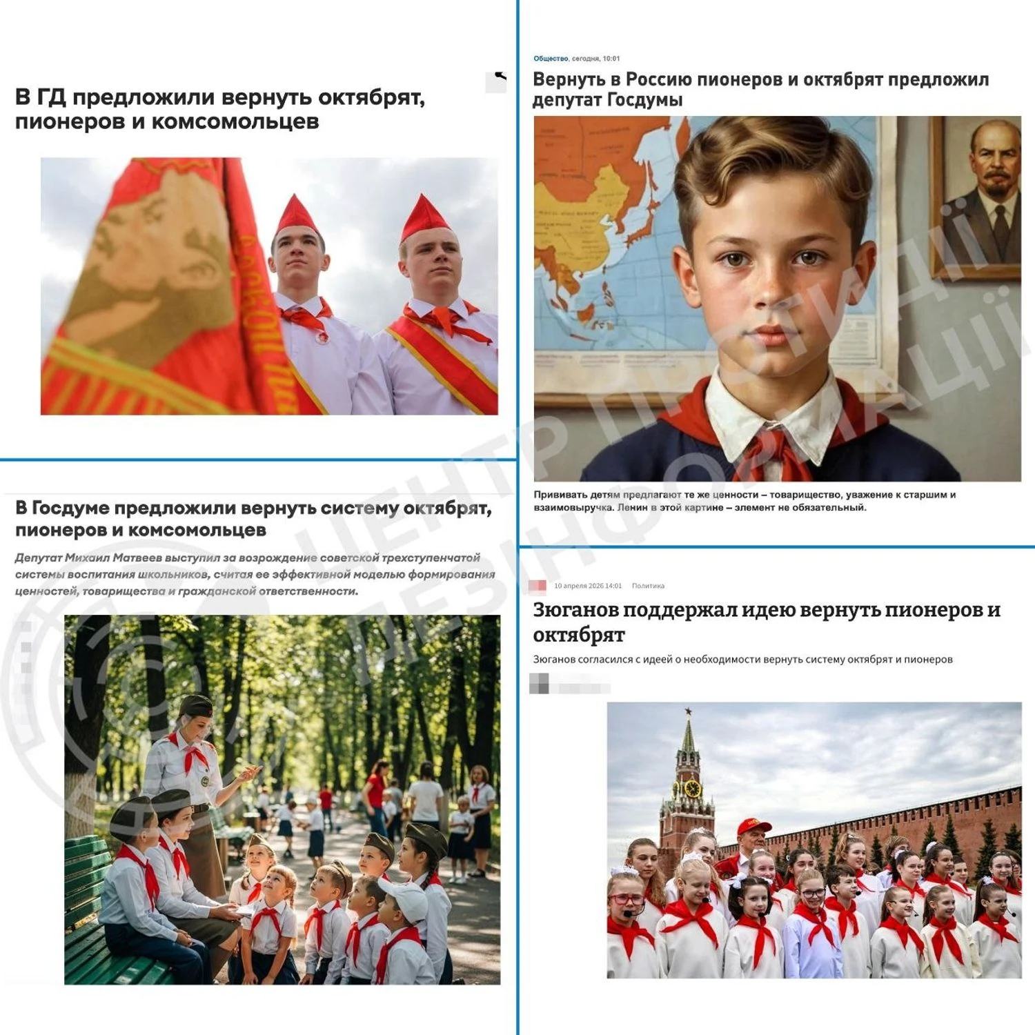 In Russia, initiatives to restore Soviet practices, which involve ideological control over children and youth, are becoming more frequent. In particular, it is about the return of organizations such as "Octobrists", "Pioneers" and "Komsomol". This was reported by the Center for Countering Disinformation, UNN reports.