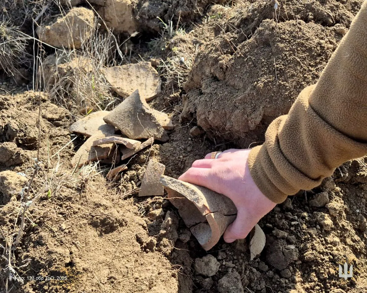 Soldiers of the 123rd Territorial Defense Brigade in the Mykolaiv region discovered an archaic burial ground from the 6th-5th centuries BC during the construction of fortifications. An Ionian amphora, a Corinthian oinochoe, and bone remains were found.