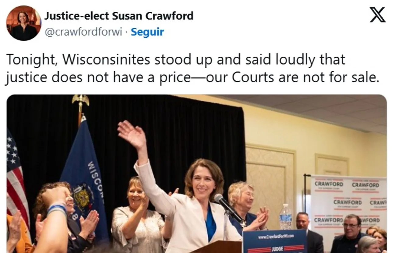 Crawford celebrated the victory to loud applause, without directly mentioning Elon Musk. It should be noted that the richest man in the world, Elon Musk, invested millions of dollars in this race, and also actively campaigned in his social network X, trying to incline the majority in the Supreme Court of Wisconsin to the side of conservatives.