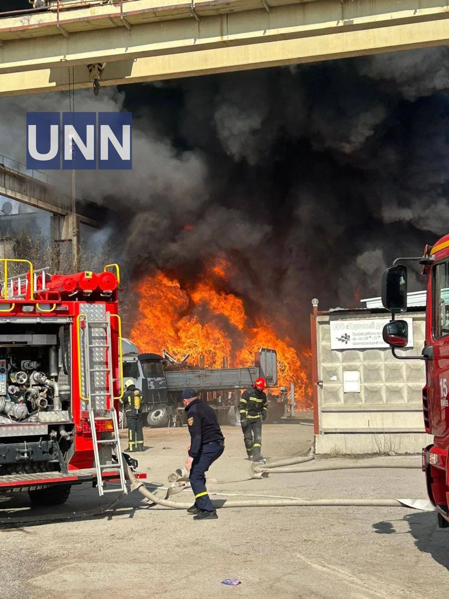 A large-scale fire is raging in Kyiv in the area of Stolychne Shose, UNN reports.