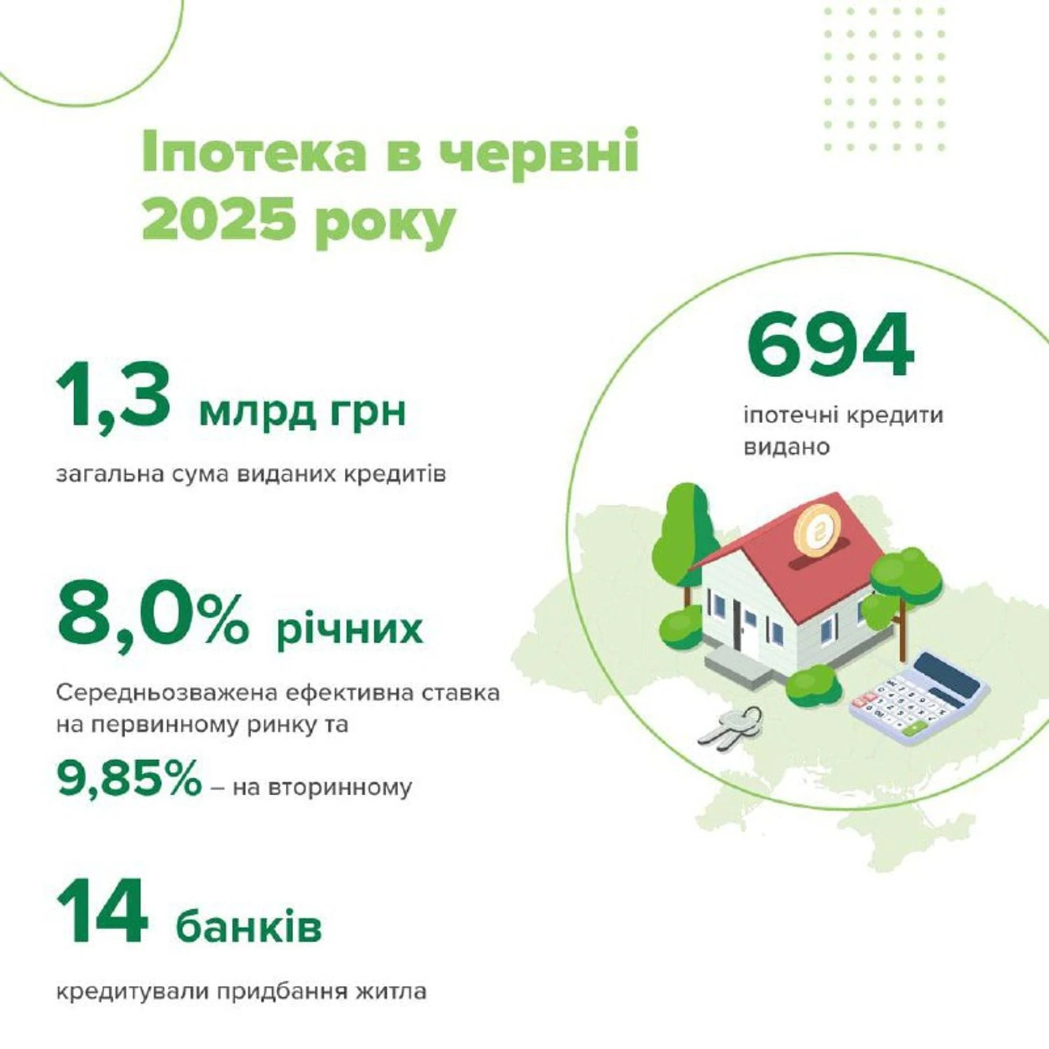 In June, Ukrainian banks issued 694 mortgage loans totaling UAH 1.3 billion.