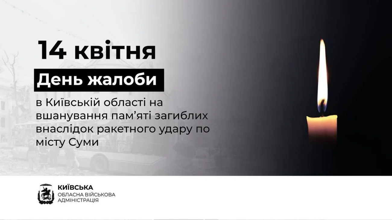 Volodymyr Kohut, head of the Poltava Regional Military Administration, confirmed that April 14 is a Day of Mourning for those killed in Sumy, and state flags will be lowered.