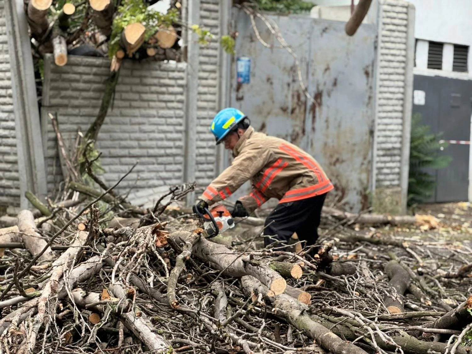 The 10th platoon of the State Emergency Service of Ukraine's Mine Rescue Unit sawed and removed 9 emergency trees that had fallen due to strong winds. At the same time, utility workers are cleaning storm drains to prevent flooding and blockages during heavy rains.