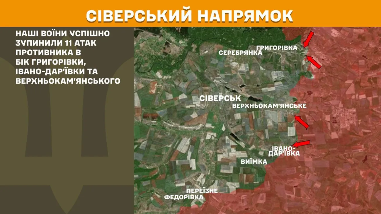 In the Siversk direction, our soldiers successfully stopped 11 enemy attacks towards Hryhorivka, Ivano-Dar'ivka and Verkhnyokamyanske.
