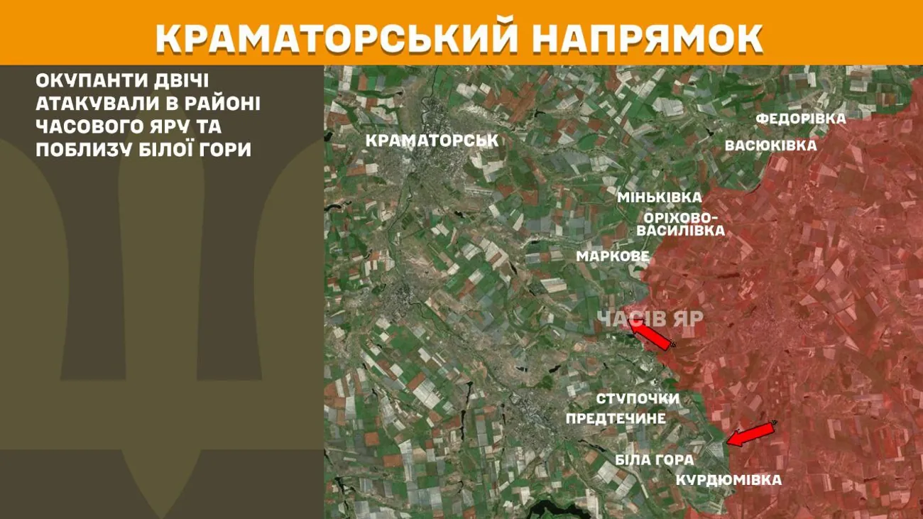 In the Kramatorsk direction, the occupiers attacked twice in the area of Chasovoy Yar and near Bila Hora.
