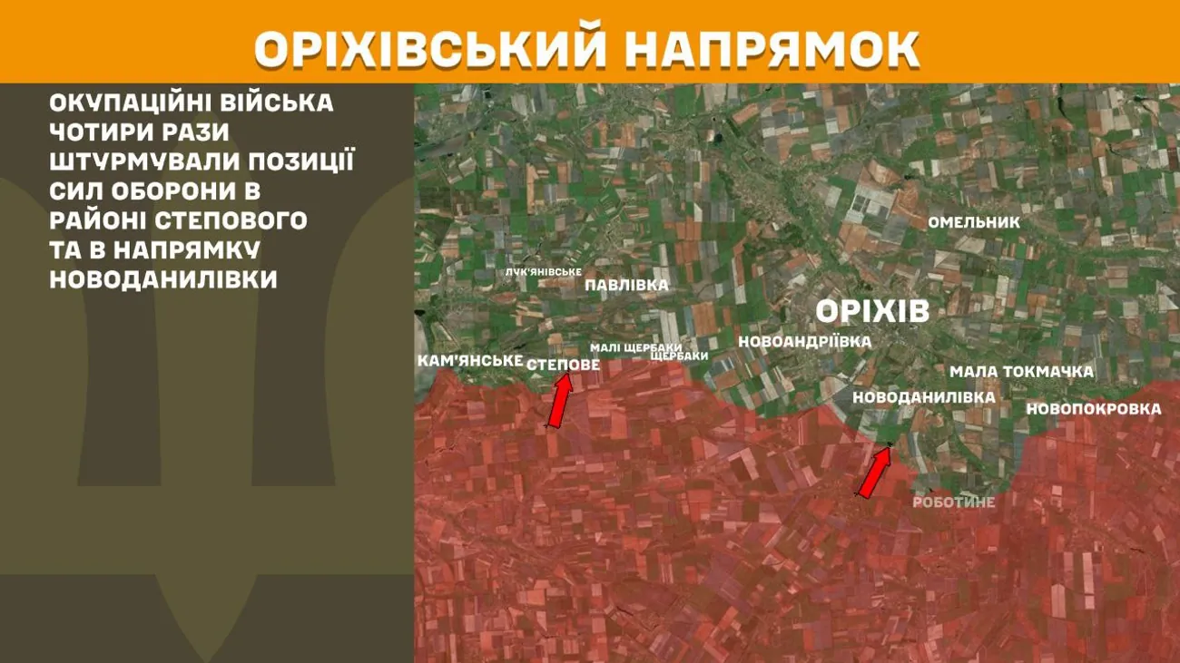 In the Orikhiv direction, the occupation troops stormed the positions of the Defense Forces four times in the area of Stepove and in the direction of Novodanilivka.