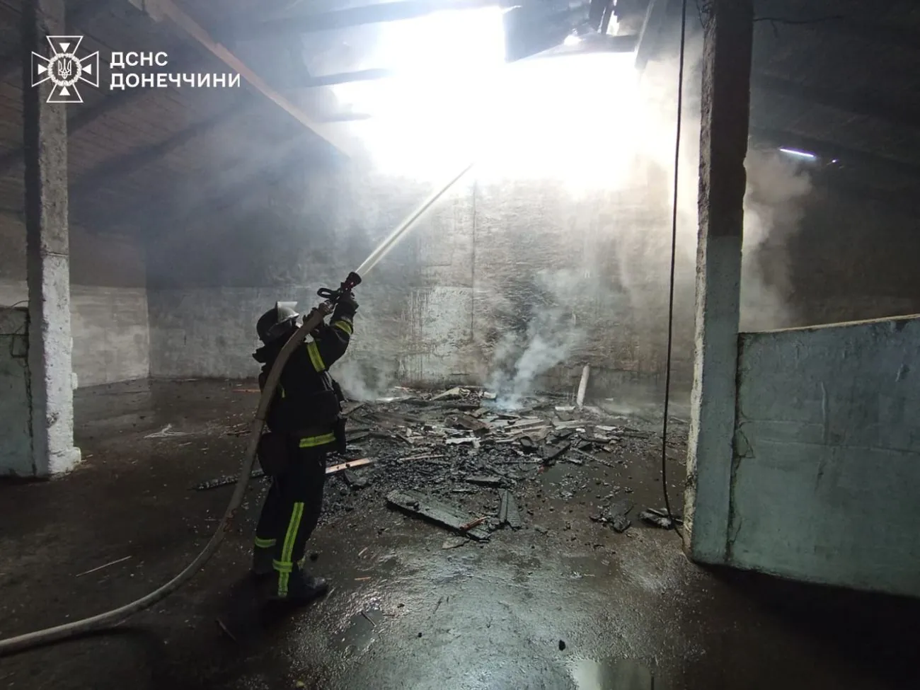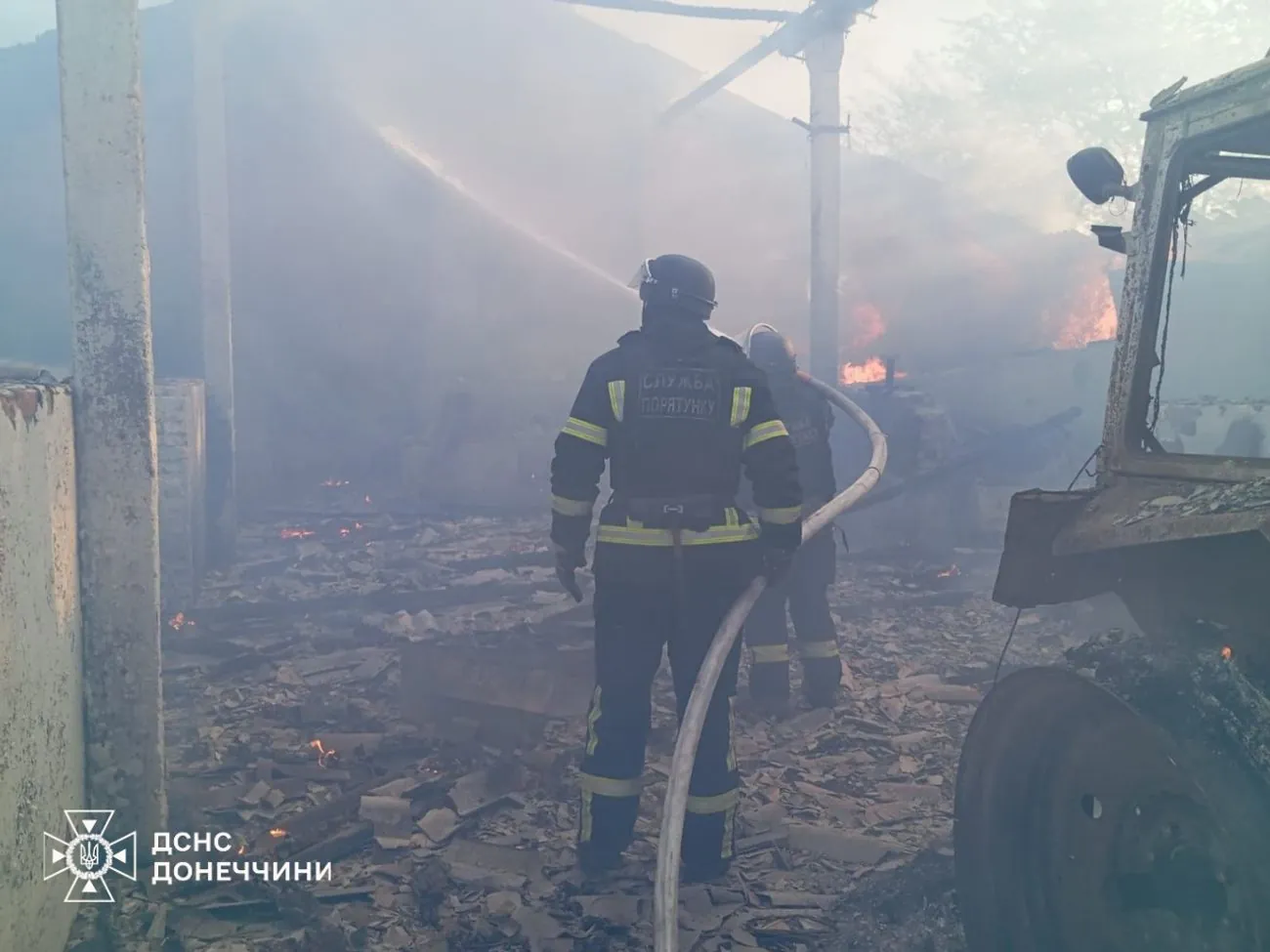 According to the SES, in the village of Sviatohorivka, Pokrovsk district, a fire broke out in a warehouse building of an agricultural enterprise as a result of an enemy hit.