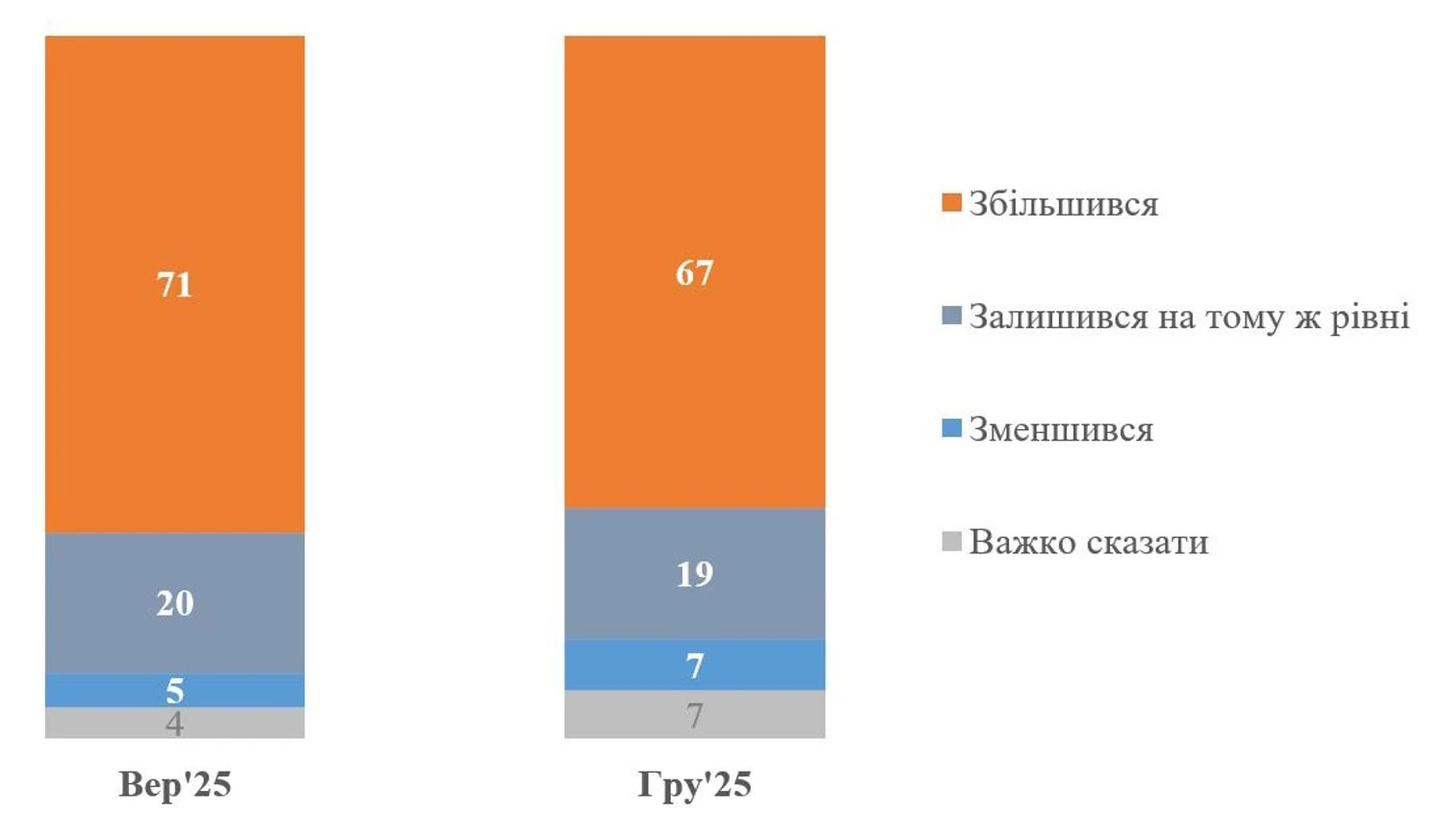 For comparison: in September 2025, the number of those who felt an increase in the level of corruption was 71%. At the same time, 20% of respondents stated that the level of corruption remained the same, and 5% believed that the level of corruption decreased.