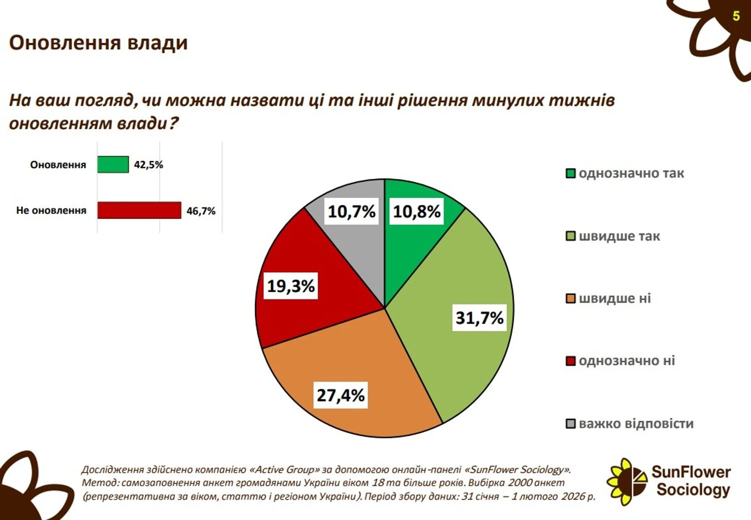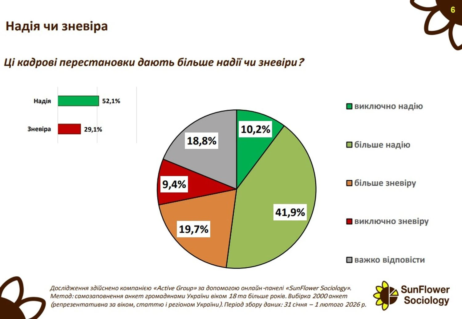 Ukrainians generally perceived the personnel reshuffles as an opportunity and a source of restrained hope, but not as a genuine system renewal, against the backdrop of fragmented trust, high disapproval ratings, and a sense of an early start to the election campaign.