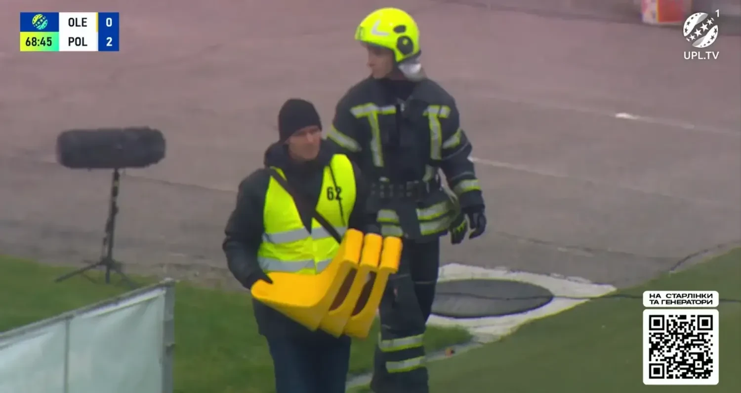 In addition, the cameras captured a moment where a steward was carrying torn chairs from the stands, which were likely ripped out by "Oleksandriya" fans and thrown onto the field.