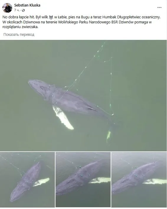Near the Polish city of Międzyzdroje, animal welfare activists freed a 7-meter humpback whale that had become entangled in fishing nets. The rescue operation was successful thanks to the calm behavior of the animal and the coordinated work of the services.