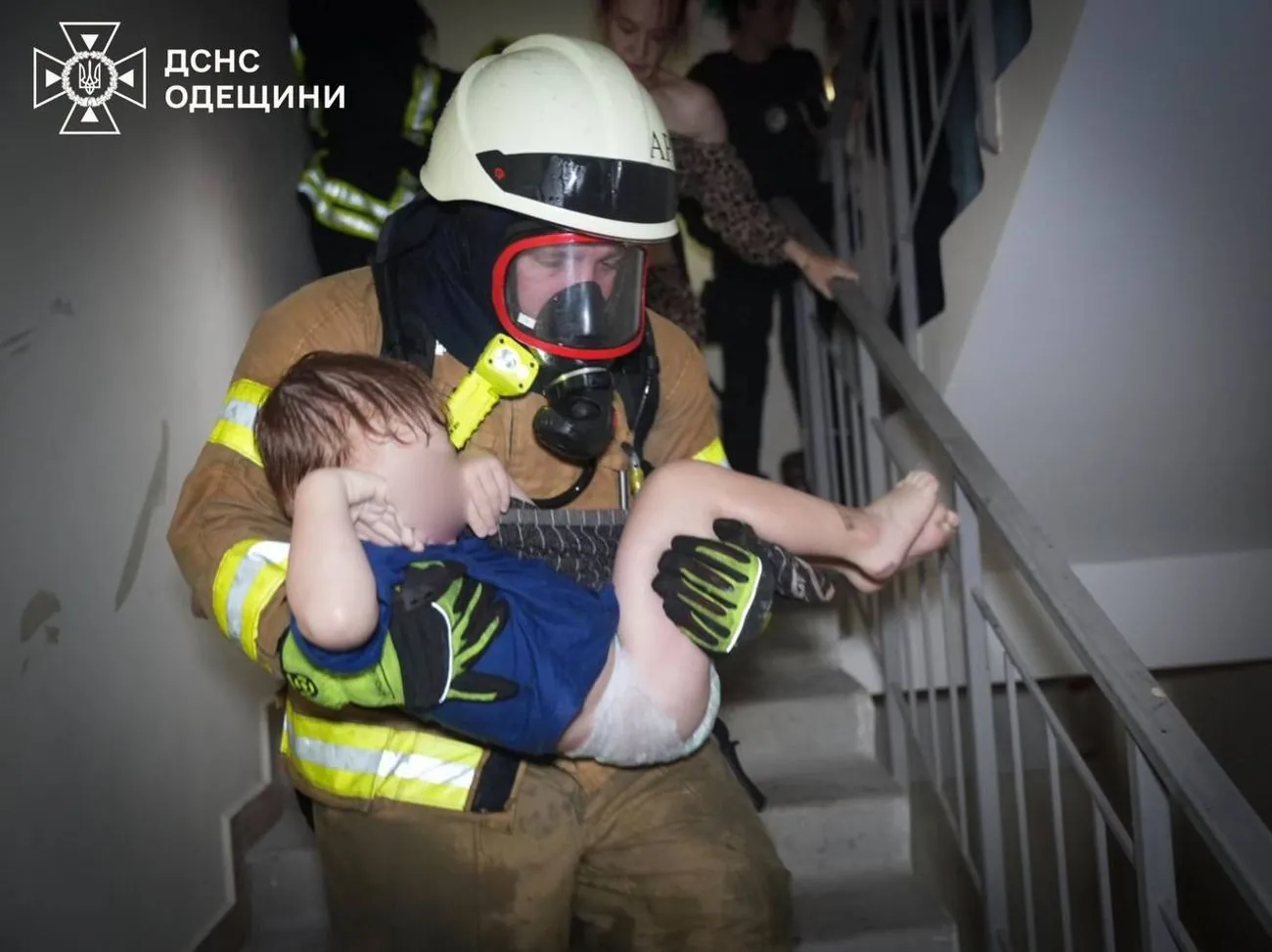 Tonight, Russia struck a 21-story residential building in Odesa. As a result of the hit, a fire broke out on the 7th, 8th, and 9th floors. People were trapped in their apartments. 5 people were rescued, including a small child.