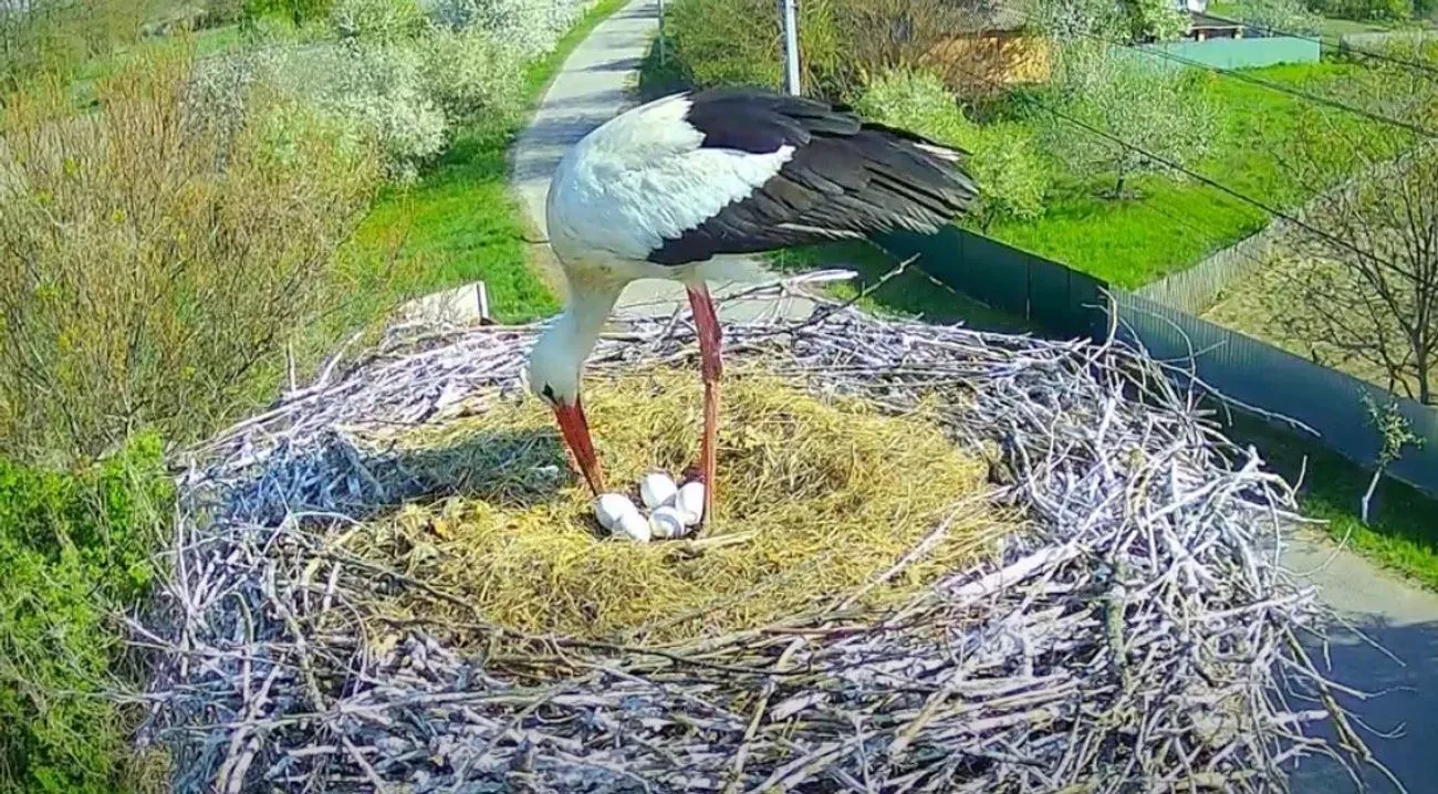 According to the researcher, after the appearance of the second egg in the nest, the storks began to incubate the clutch more densely, constantly changing each other every few hours. Grytsyk and Odarka not only take turns sitting on the eggs in their shift, but also perform characteristic manipulations at certain intervals: they ventilate the clutch, loosen the litter, drain it with their beaks, turn and move the eggs, moving them.