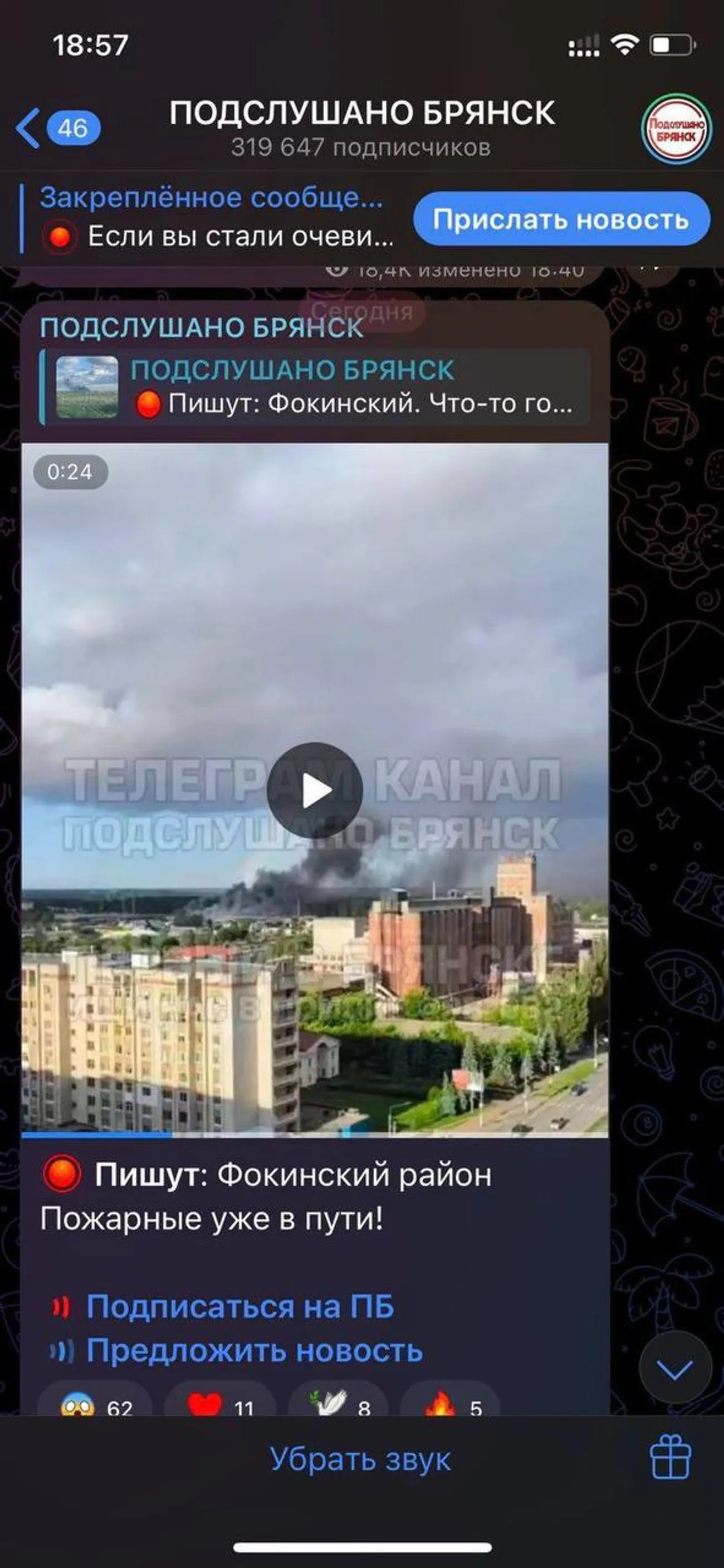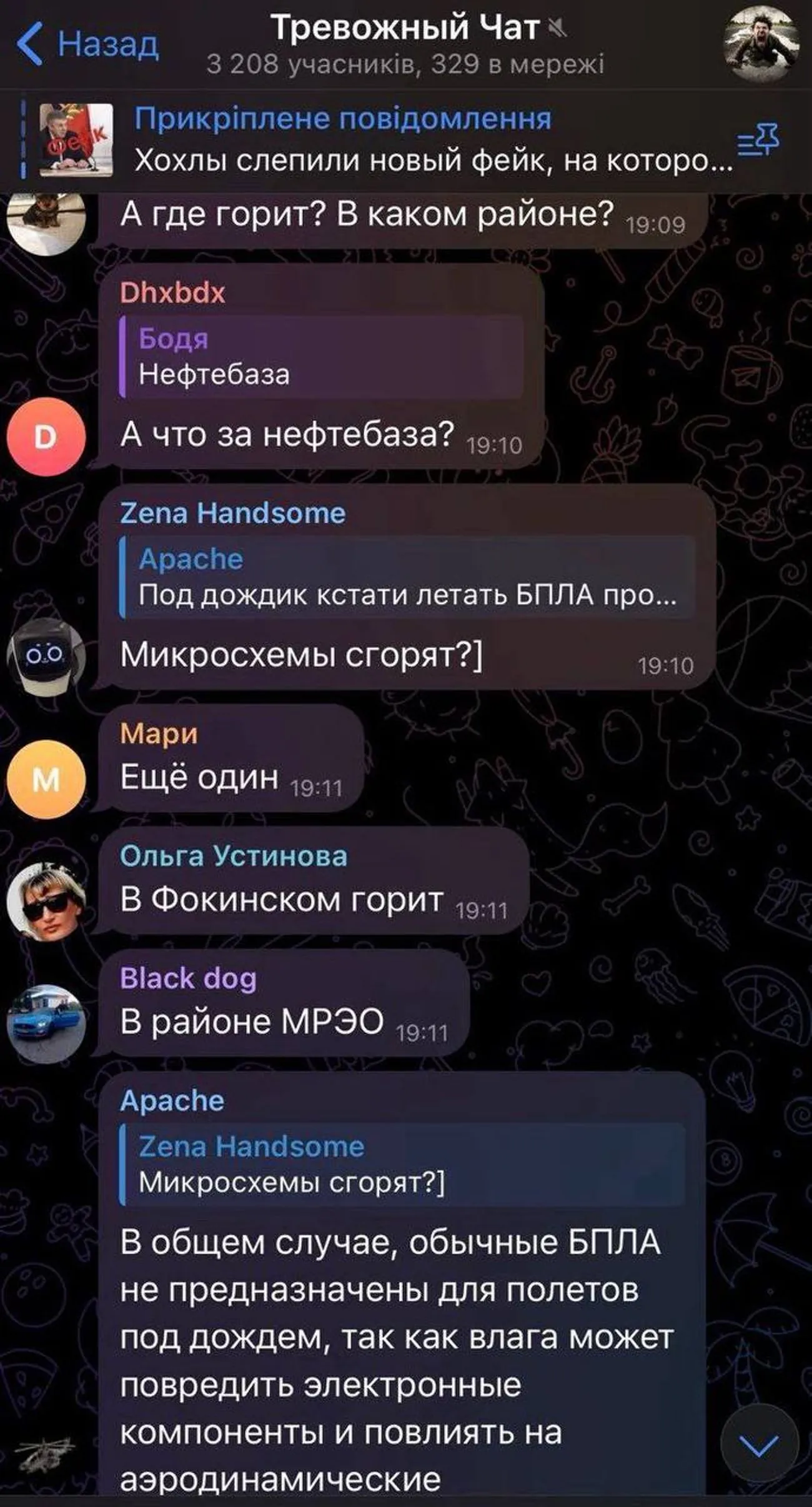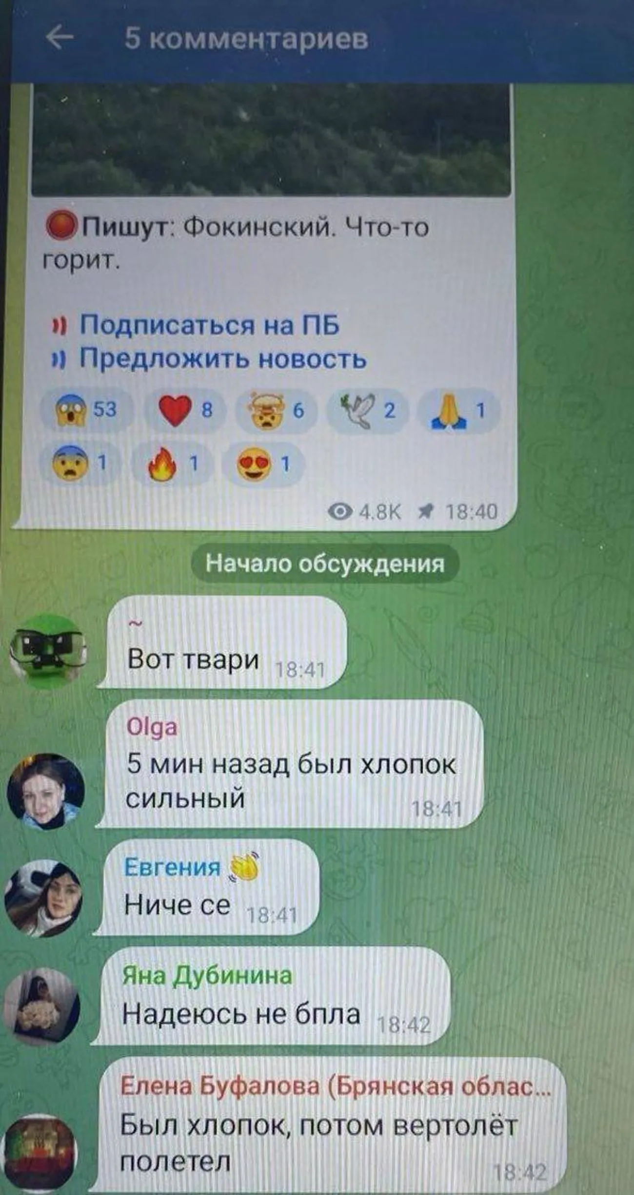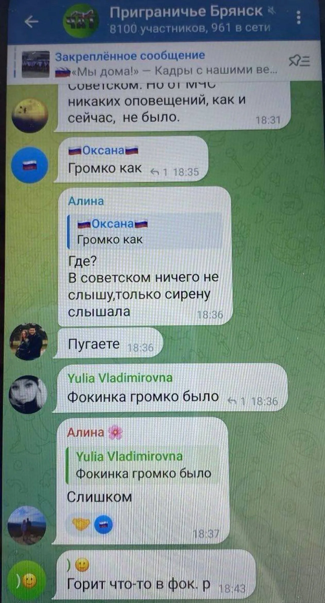 Initially, local publics on social networks reported flights of unknown UAVs. Later, residents of Bryansk began to complain about explosions and a fire in one of the city's districts. Some locals did not even conceal the exact location and target of the strike.