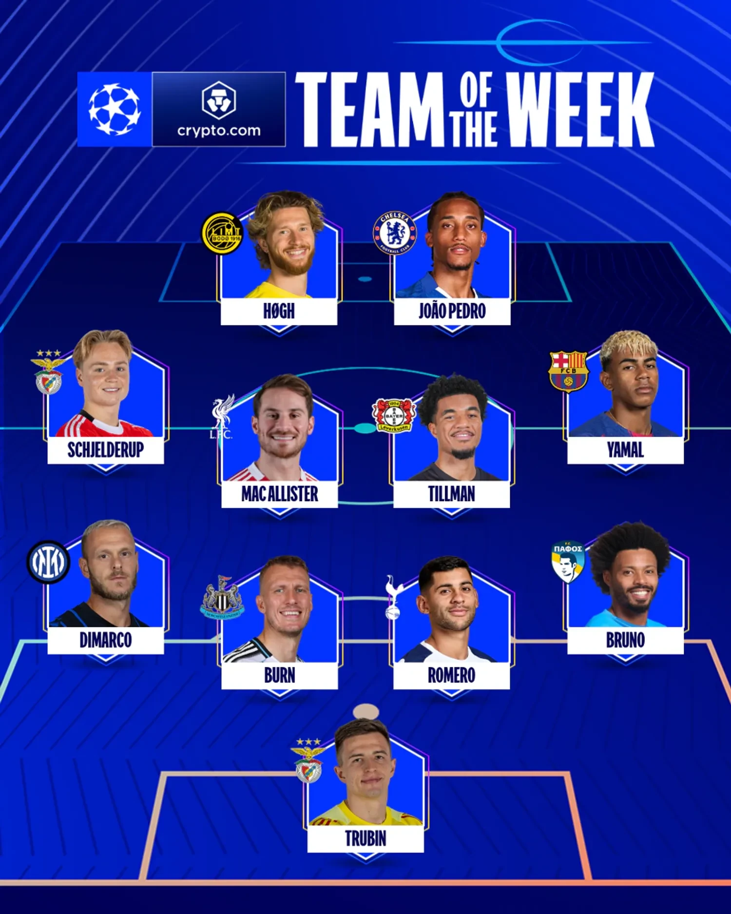 Trubin also made it to the best team of the week, and his teammate, Norwegian Andreas Schjelderup, who scored a brace against Real Madrid, was recognized as the best player of the round.