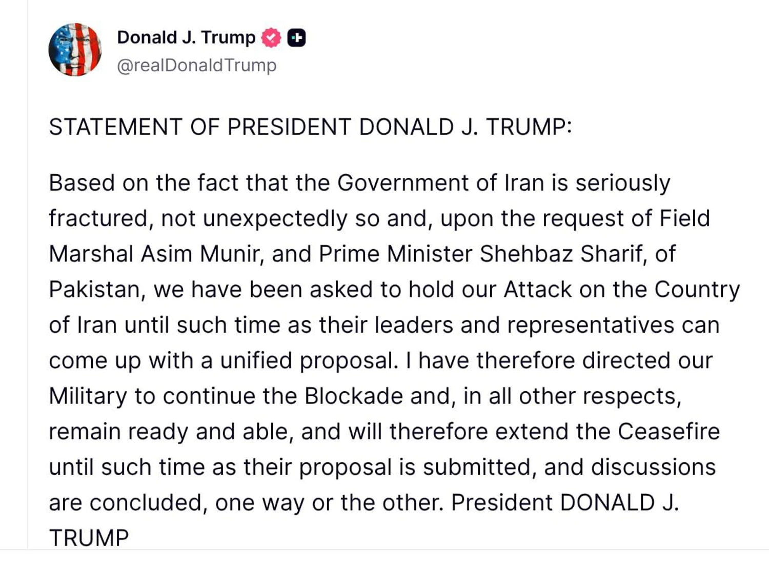 Trump announced the postponement of the offensive on Iran and the continuation of the ceasefire