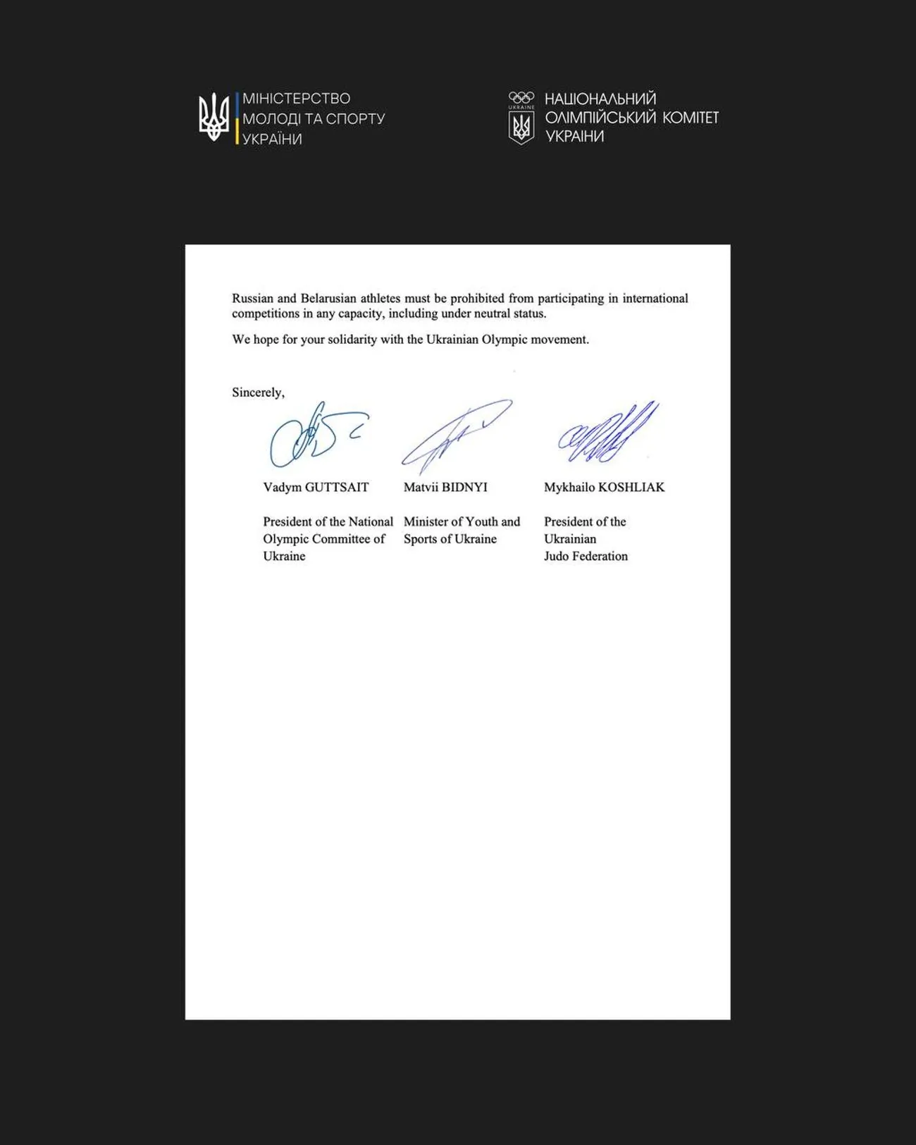 Ukraine called on the International Judo Federation and the IOC to carefully check the stated facts and review the decision to allow these athletes to participate in competitions using national symbols.