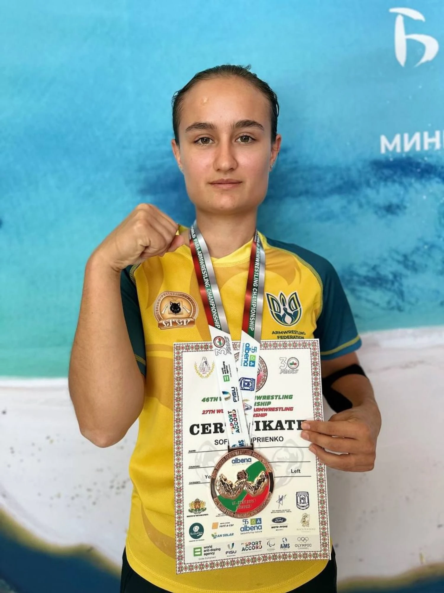 Ukrainian athletes won five medals at the World Armwrestling Championship in Bulgaria. Oleh Zhoh won gold, while Artem Popov, Sofia Onopriienko, and Andriy Dendeberia took home bronze medals.