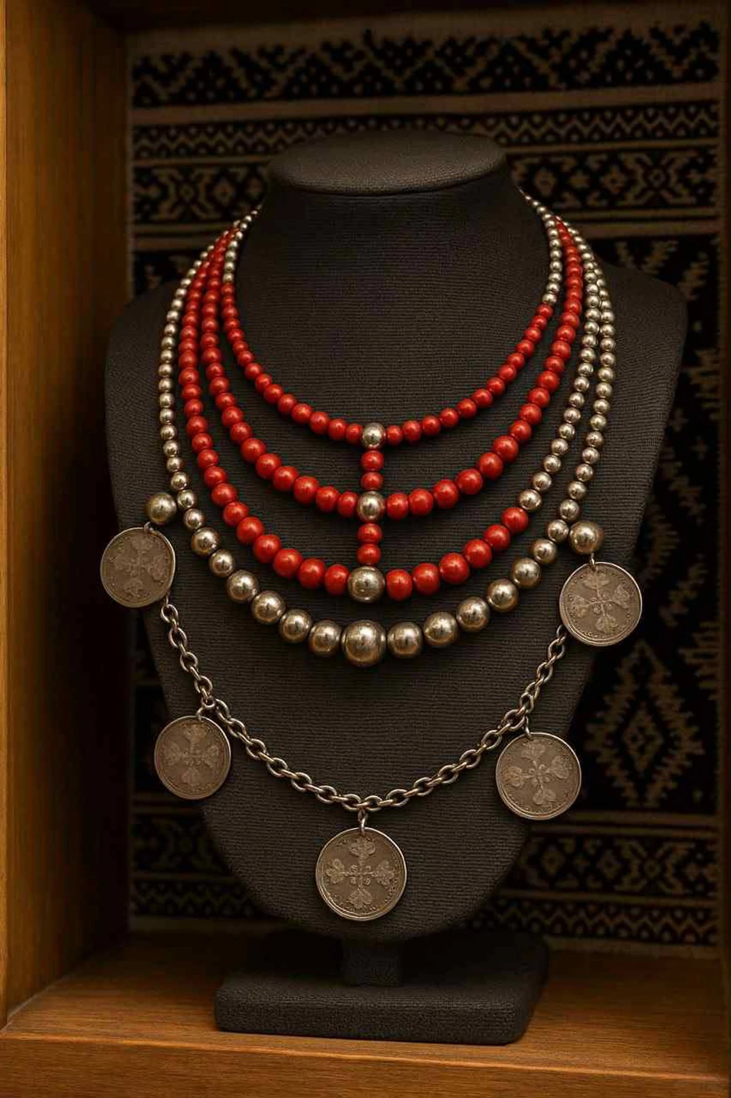 The Zgarda is one of the oldest protective amulets in Carpathian culture. It was worn as a talisman and symbol of strength. The number of coral strands carried particular meaning — the more coral, the wealthier the family was perceived. In my version, the Zgarda is very contemporary. I preserved the archetype — natural coral, copper, and a sacred structure — but reimagined it with a new form. Initially, it was a digital design project. I posted the visual rendering on my jewelry blog online, and the response was overwhelming — so many compliments and messages that I seriously began considering turning it into a real, physical piece as part of the Ukraine collection of my brand, L’Impératrice Jewelry. By the way, a digital version of Zharda is going to be exhibited this year on Digital Jewelry Week in Milan Italy.