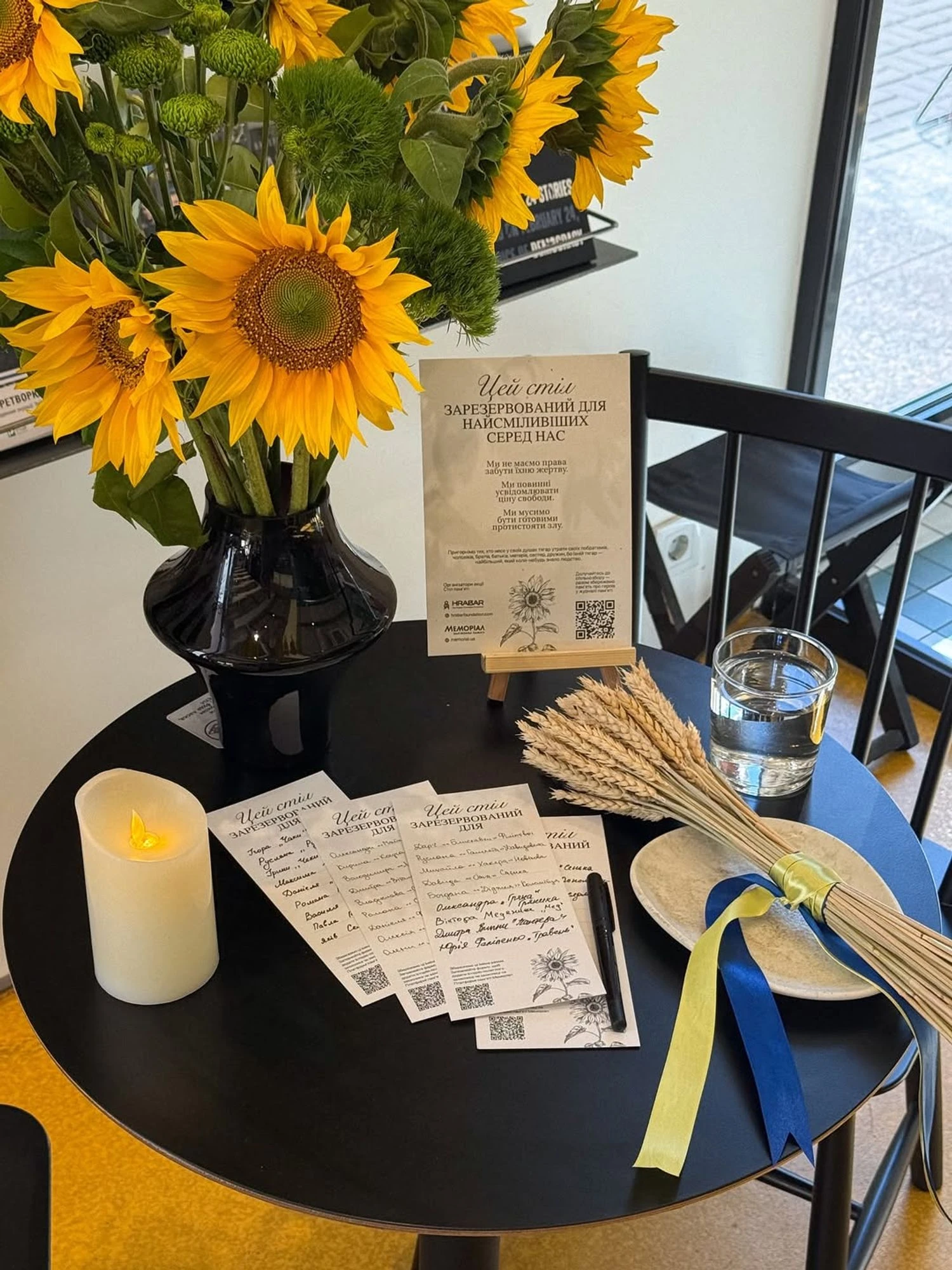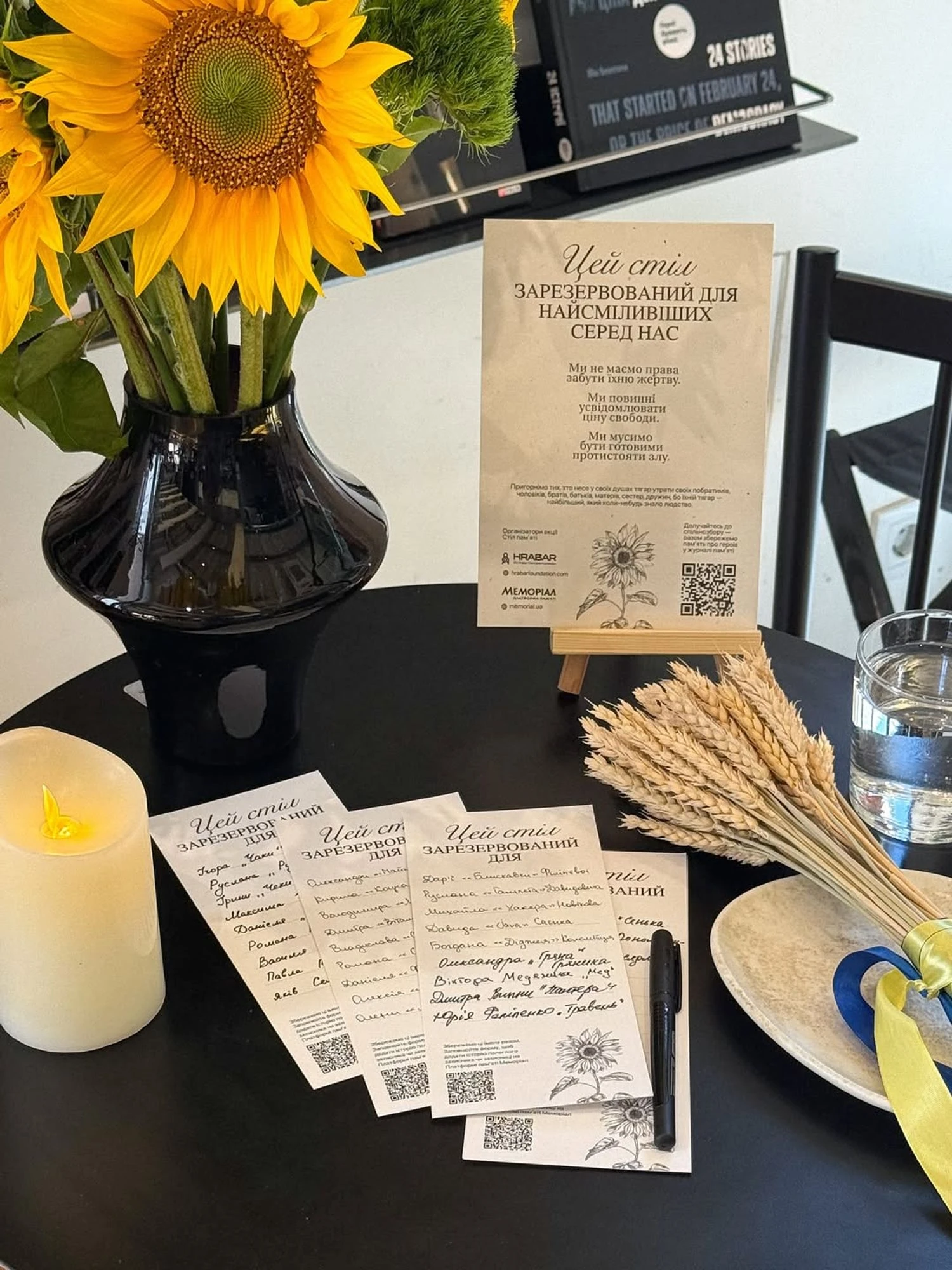 Тисячі закладів по всій Україні та за кордоном на цілий день резервують столики для полеглих військових - відвідувачі можуть вписувати туди імена своїх рідних і друзів. До цих закладів також долучились Книгарня "Сенс на Хрещатику" і кафе "Місто" у Луцьку.