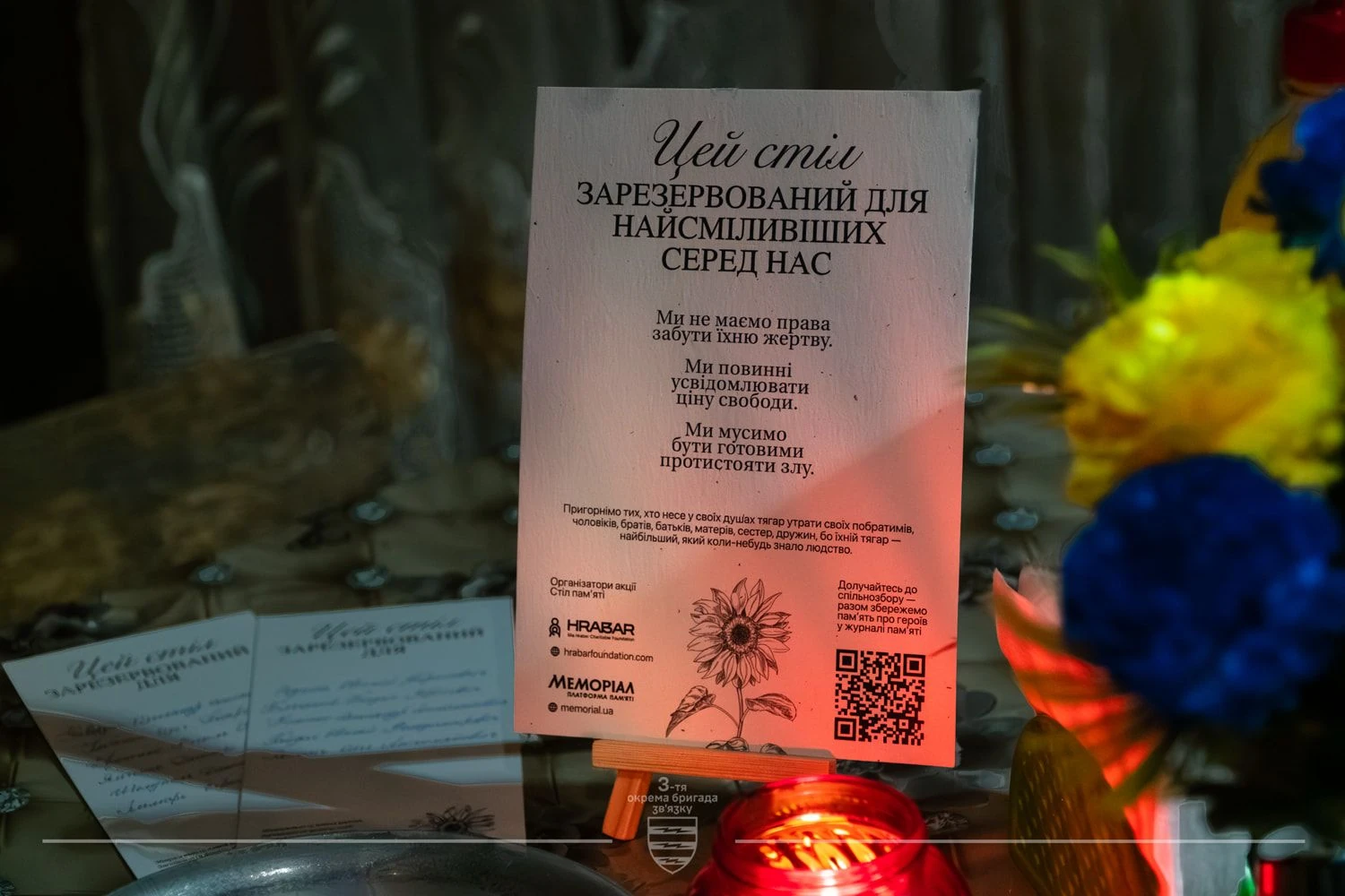 На цих світлинах - не просто символічно зарезервований стіл. На цих світлинах - символ. Символ того, що ми пам’ятаємо ціну нашої свободи. Символ шани до тих, хто віддав за Батьківщину найдорожче - своє життя