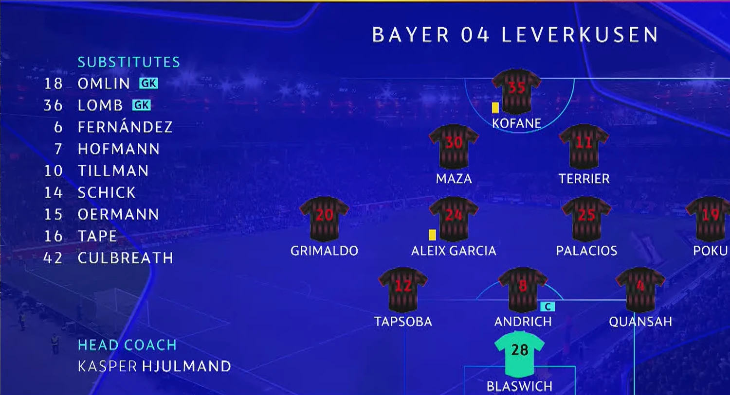 Перший тайм зустрічі минув без забитих м’ячів. Господарі поля відкрили рахунок одразу після перерви — на 46-й хвилині відзначився Роберт Андріх, який вивів "Баєр" уперед.