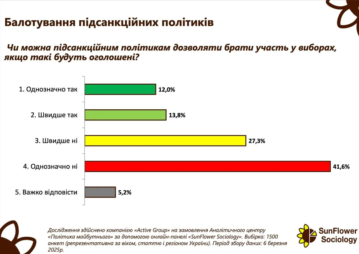 Також, більшість українців висловилися проти участі підсанкційних політиків у виборах.