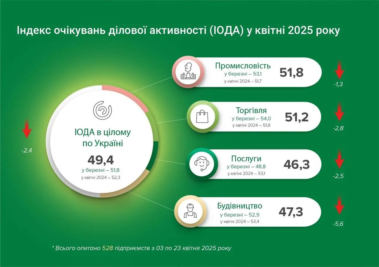 У квітні 2025 року індекс очікувань ділової активності (ІОДА) становив 49,4 порівняно з 51,8 у березні 2025 року (у квітні 2024 року - 52,3).